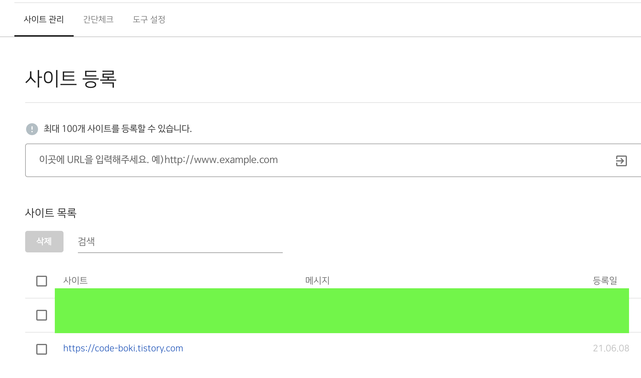 1. 웹 마스터 도구에서 본인의 사이트를 등록합니다.