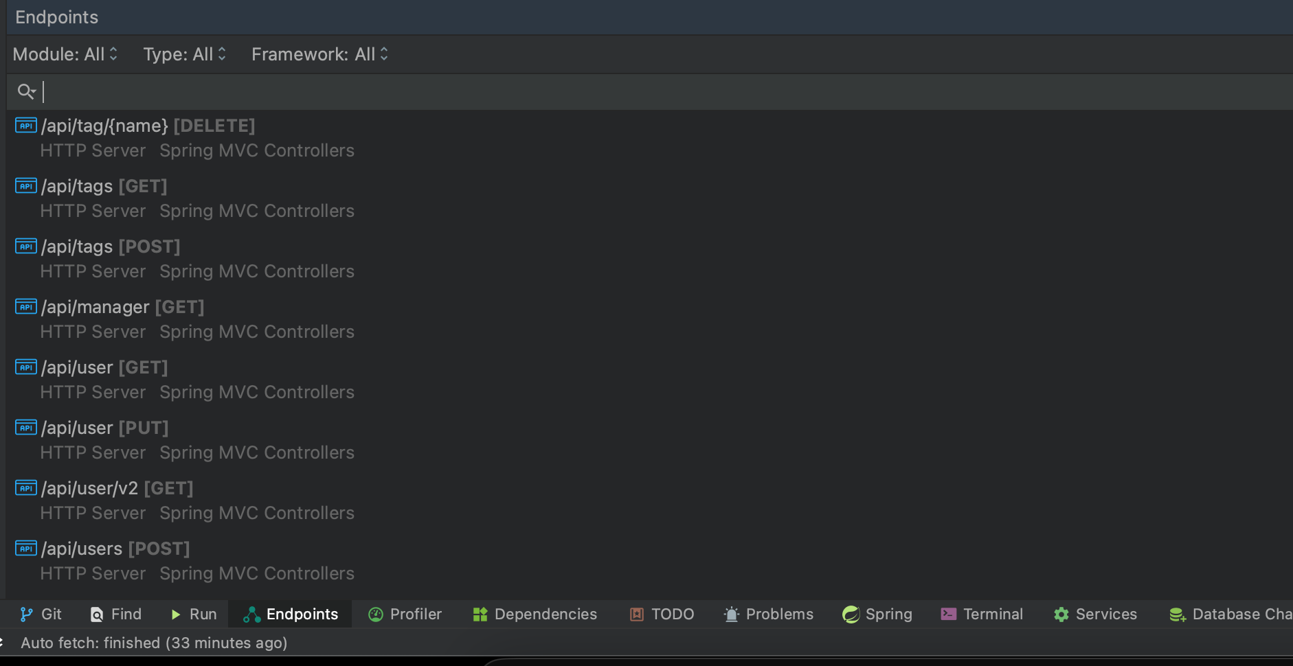- RestfulHelper 설치했다면: cmd + | 안했다면 아래의 Endpoints에서 살펴볼 수 있음(rest api)