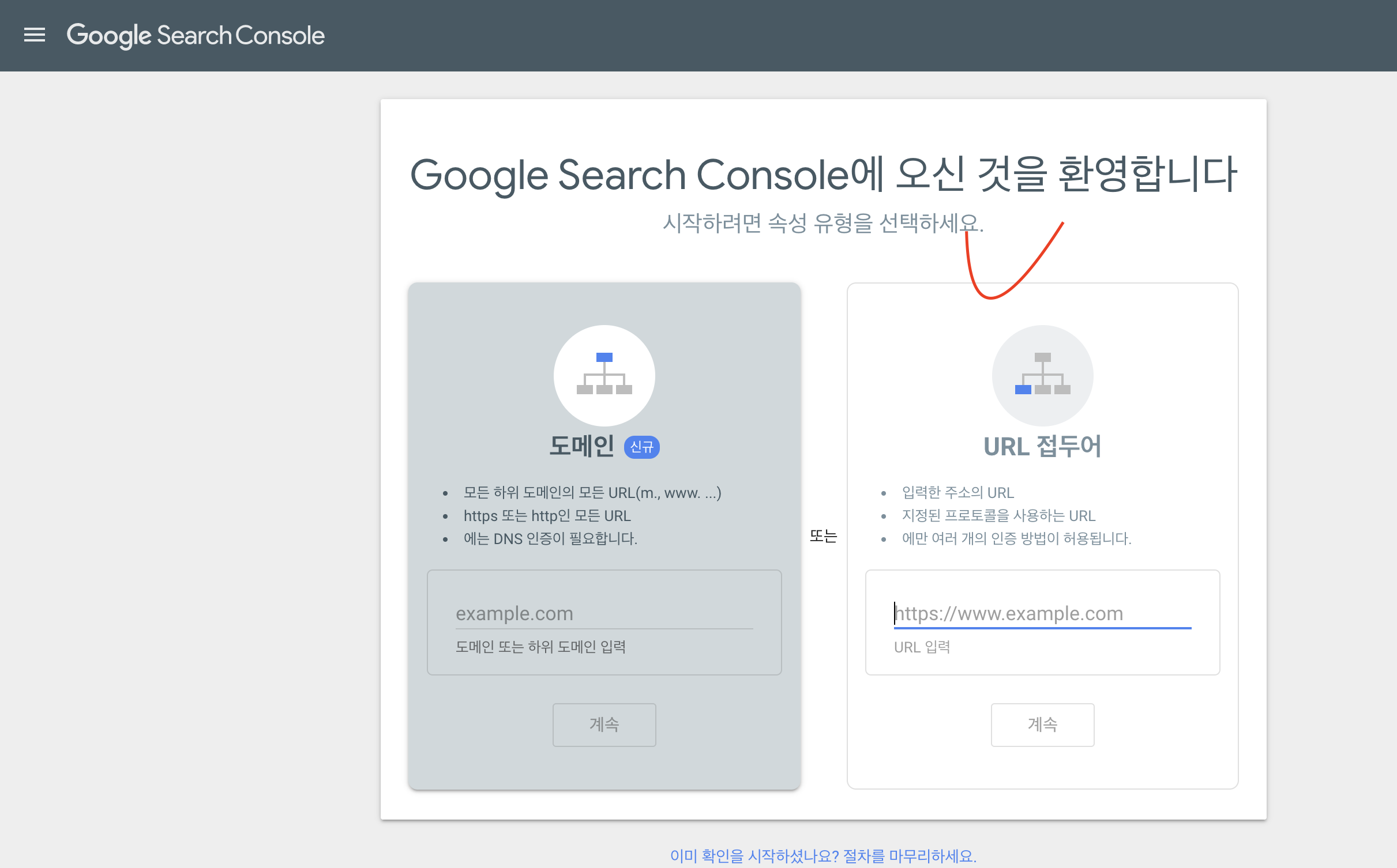 1. https://search.google.com/search-console/welcome 로 접속해주세요.