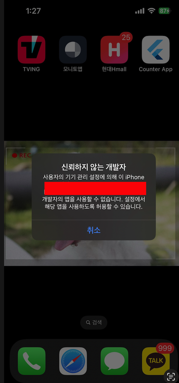 근데, 아직 기기는 우리가 신뢰할 만한 개발자인지 모르는 상태이다