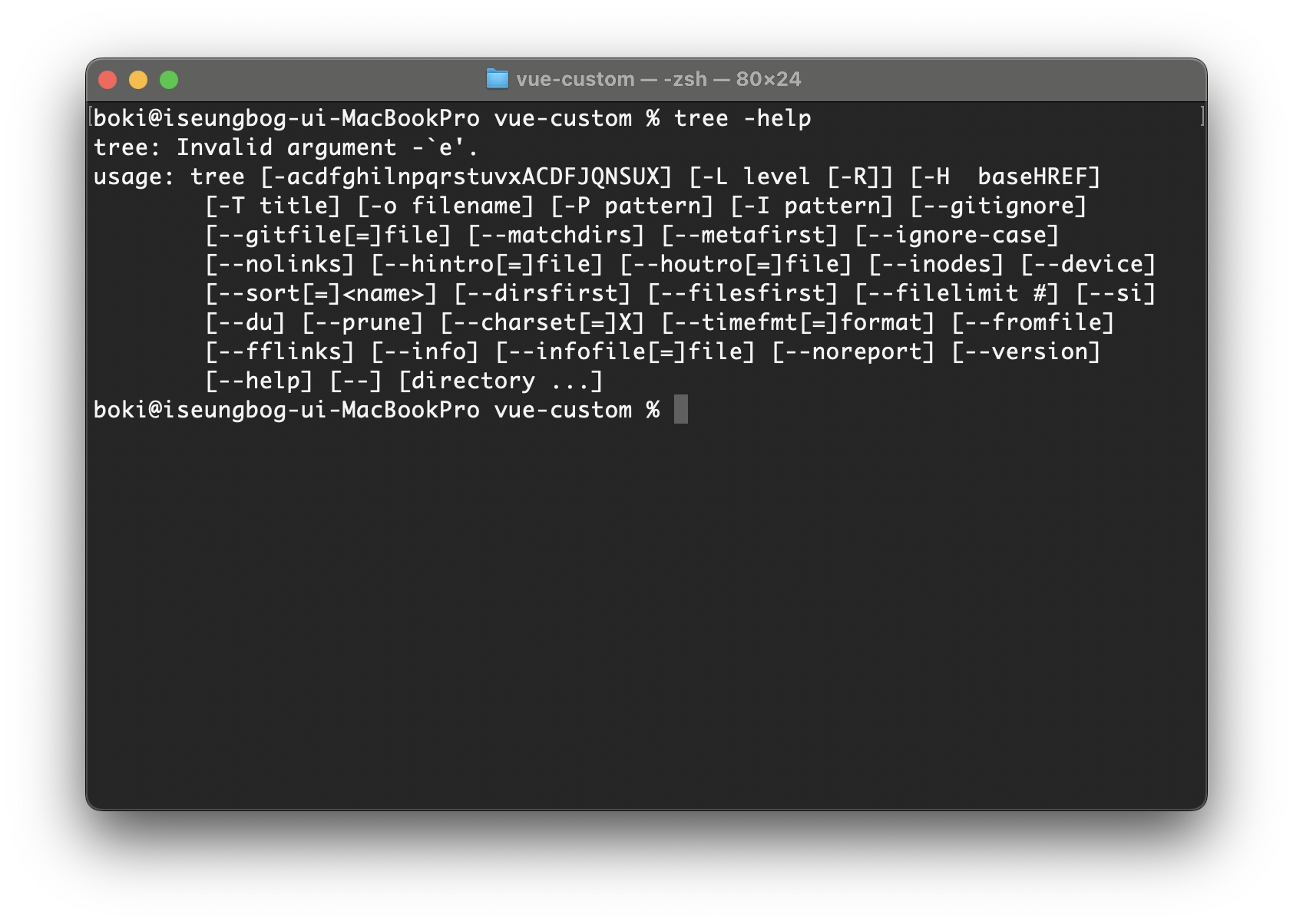 그래서 homebrew가 설치되었다는 가정하에 brew install tree 로 tree를 설치해준다