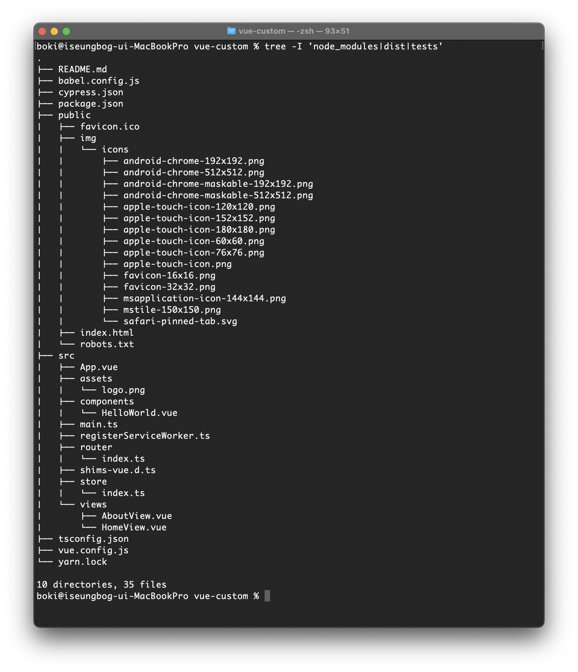 node_modules(의존성 폴더), dist(빌드, 번들링된 결과 폴더), tests(테스트 폴더)