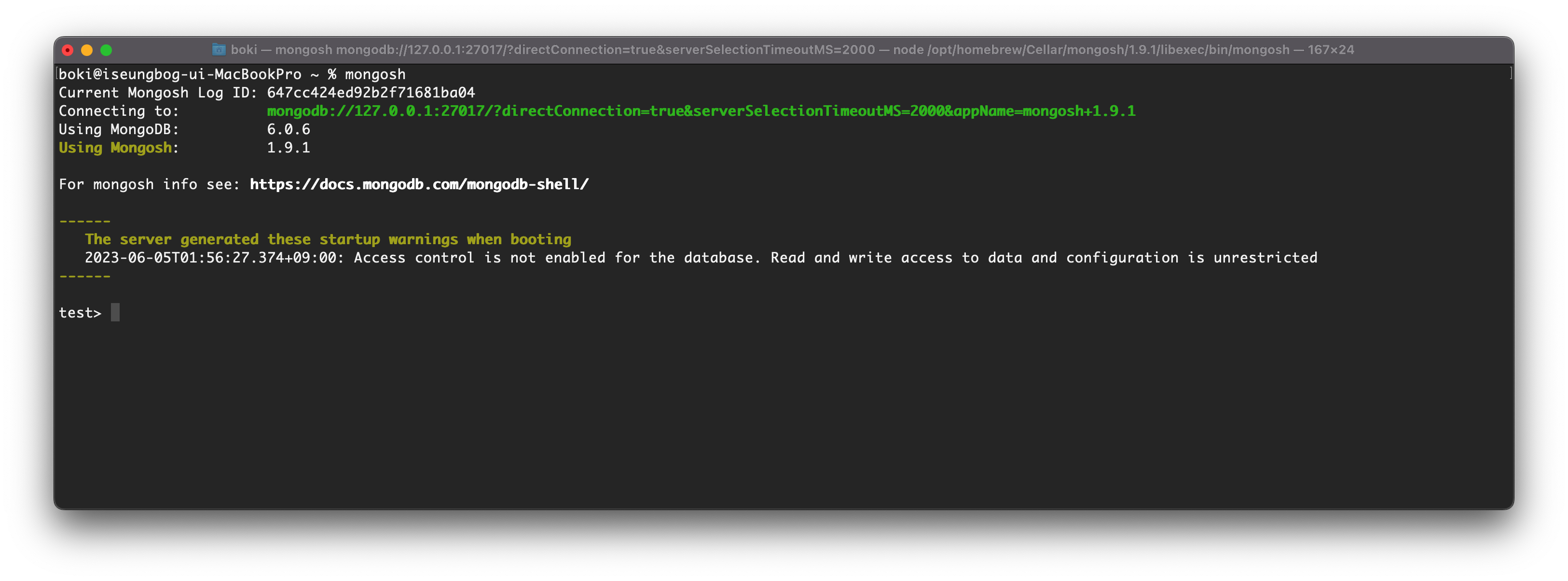 이제 몽고디비 서비스를 실행했으니 명령어를 입력해보자
