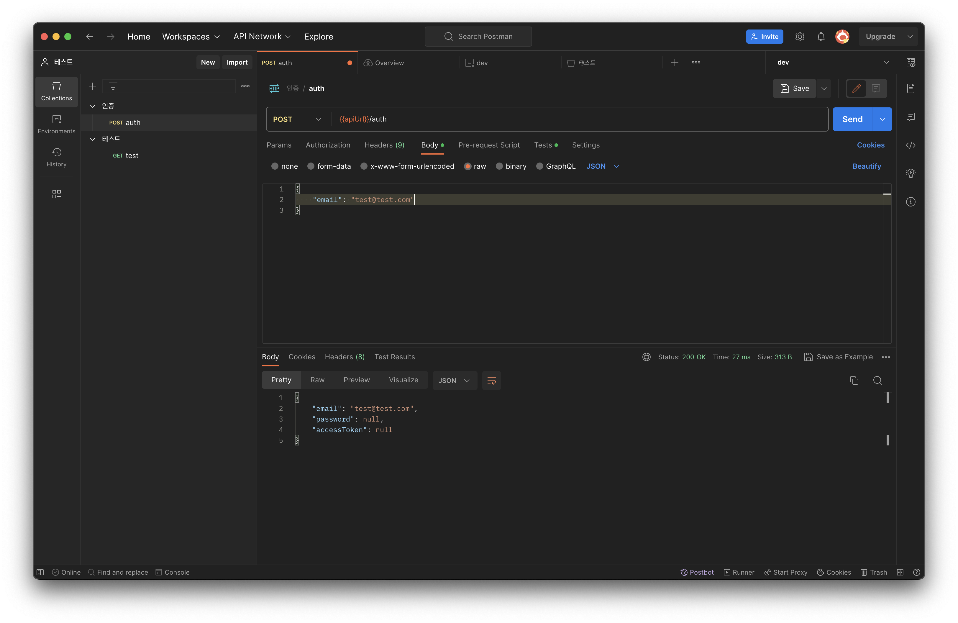 이번에는 POST /auth 가 아닌 GET /test를 테스트 할 것이다