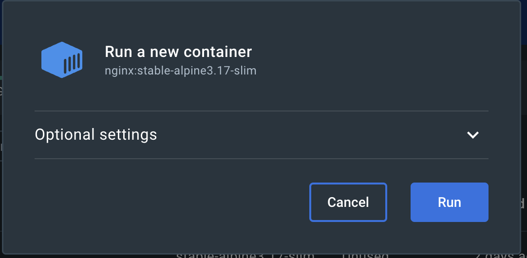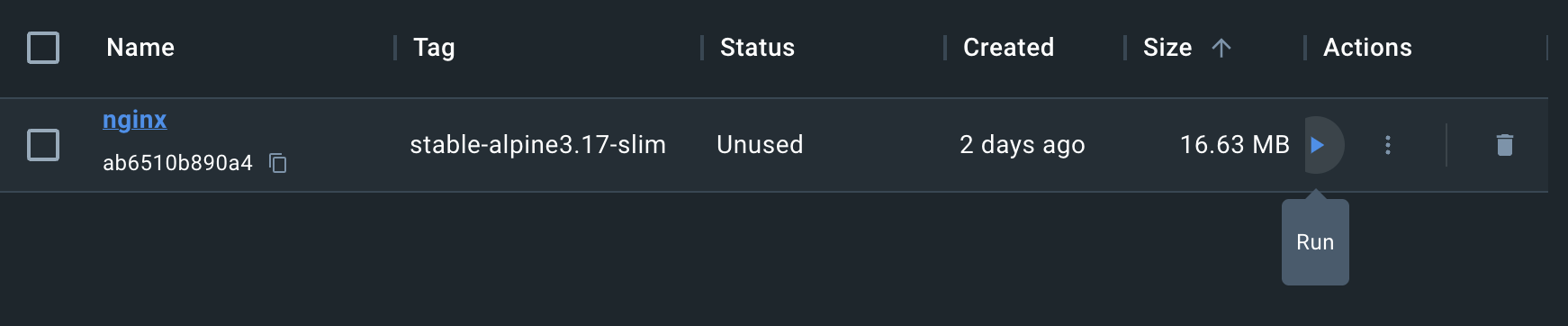 이미지 옆에 재생버튼을 클릭해서 컨테이너로 띄울 수 있다