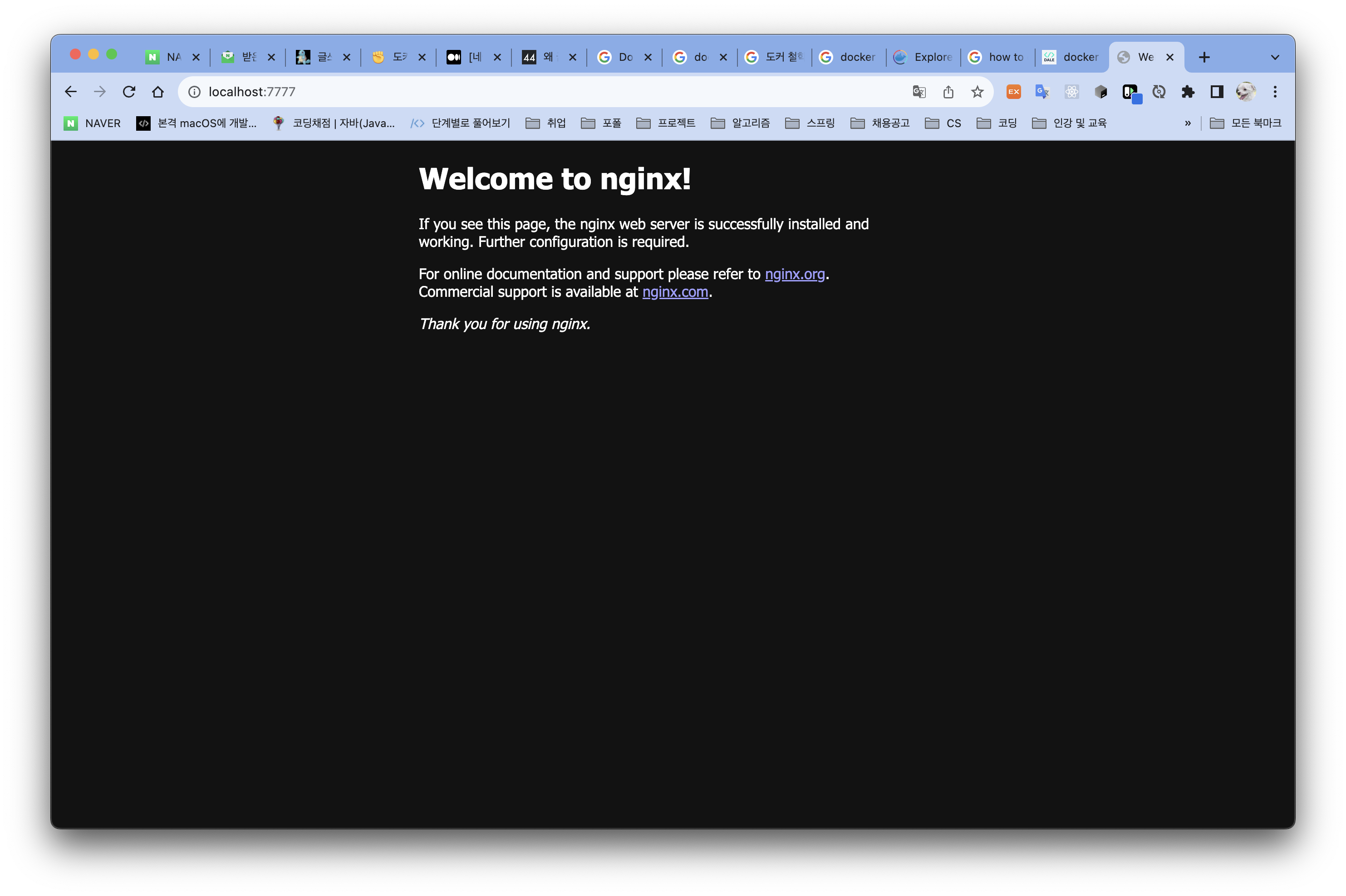 nginx가 잘 작동하는 것을 확인할 수 있다