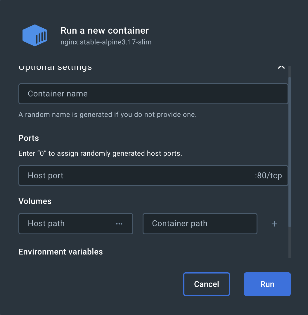 Container name에는 nginx-test라고 입력을 하고