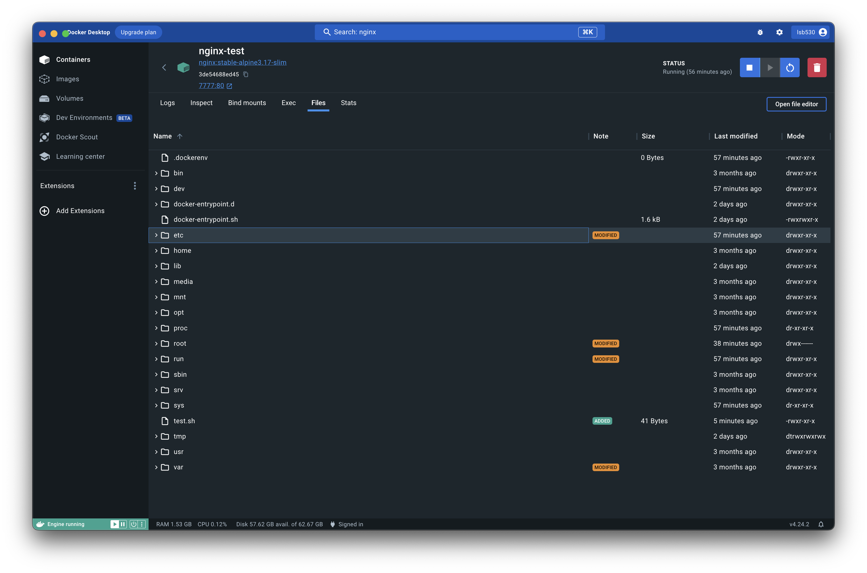 docker exec -it nginx-test /bin/bash