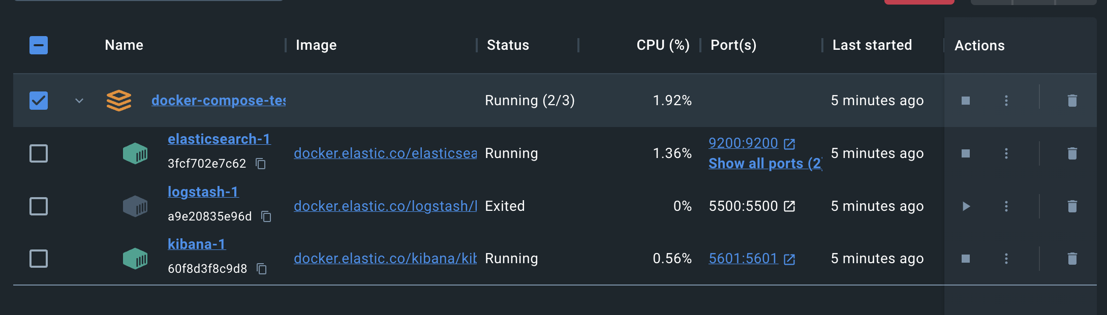 docker ps -a