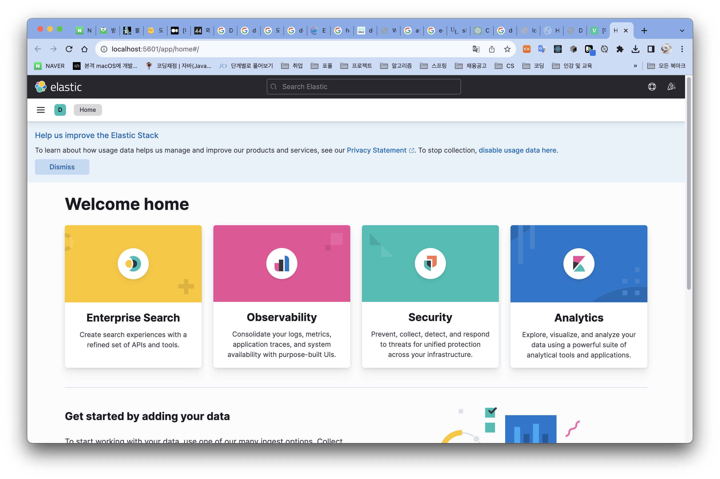 http://localhost:5601로 들어간 화면