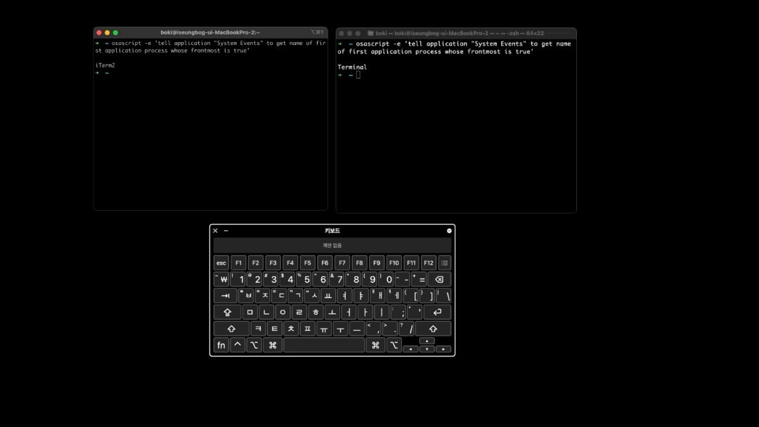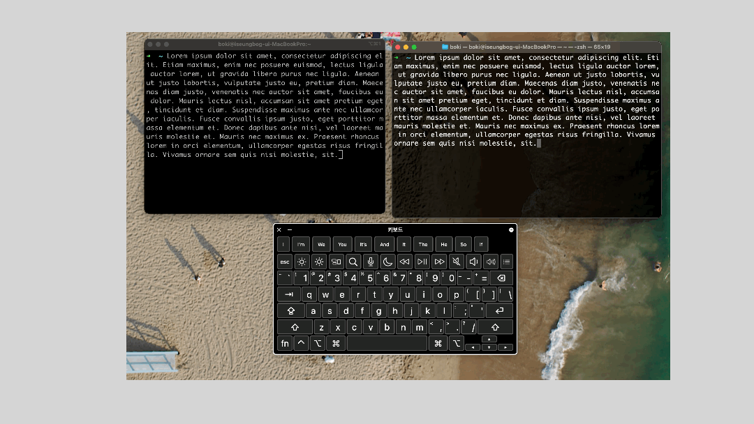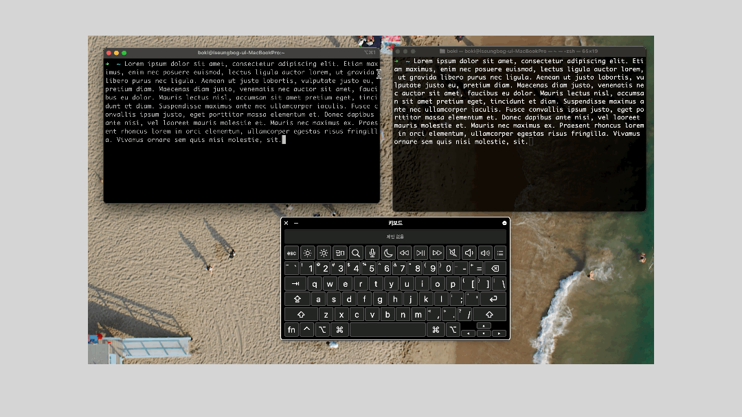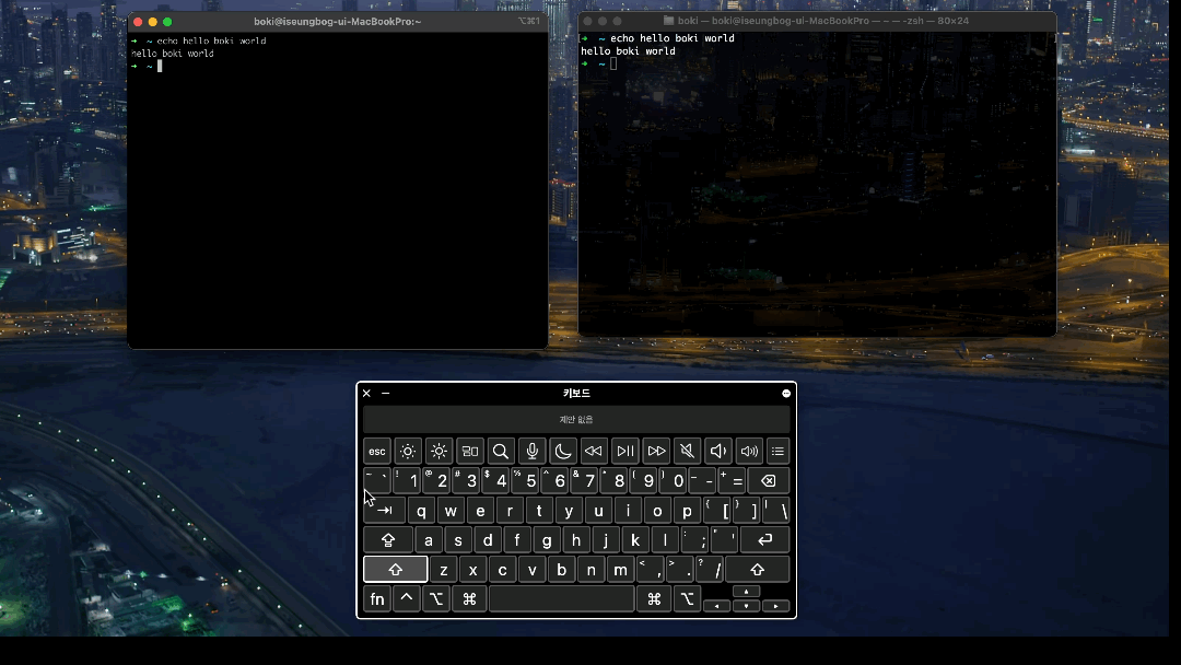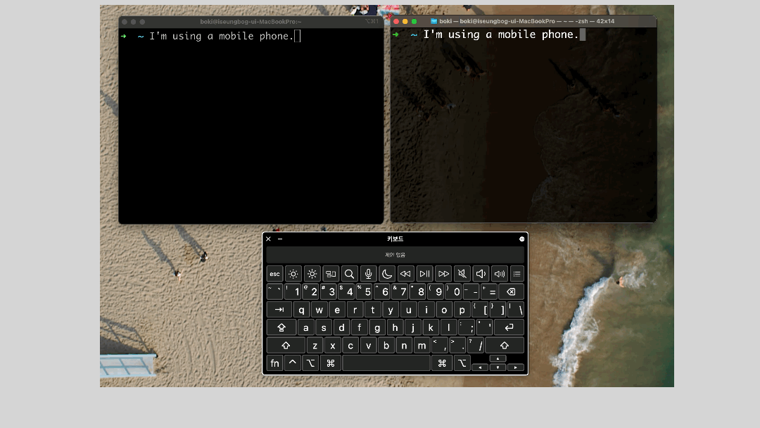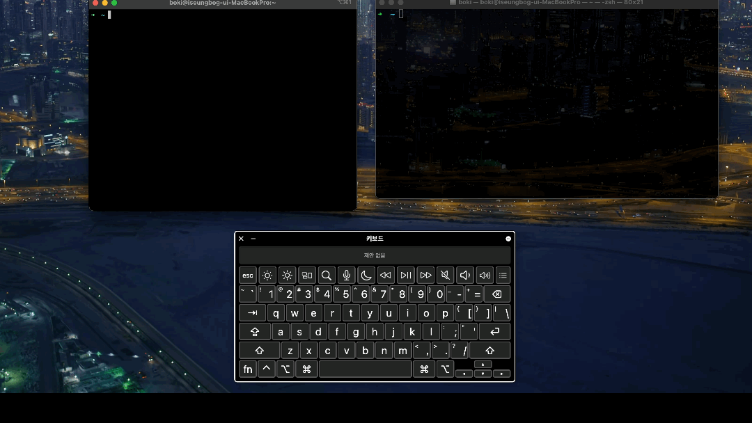 내가 무슨 키를 누르는지 모르기 때문에 keyboard viewer를 이용해서 입력되는 키를 보이게 해준다