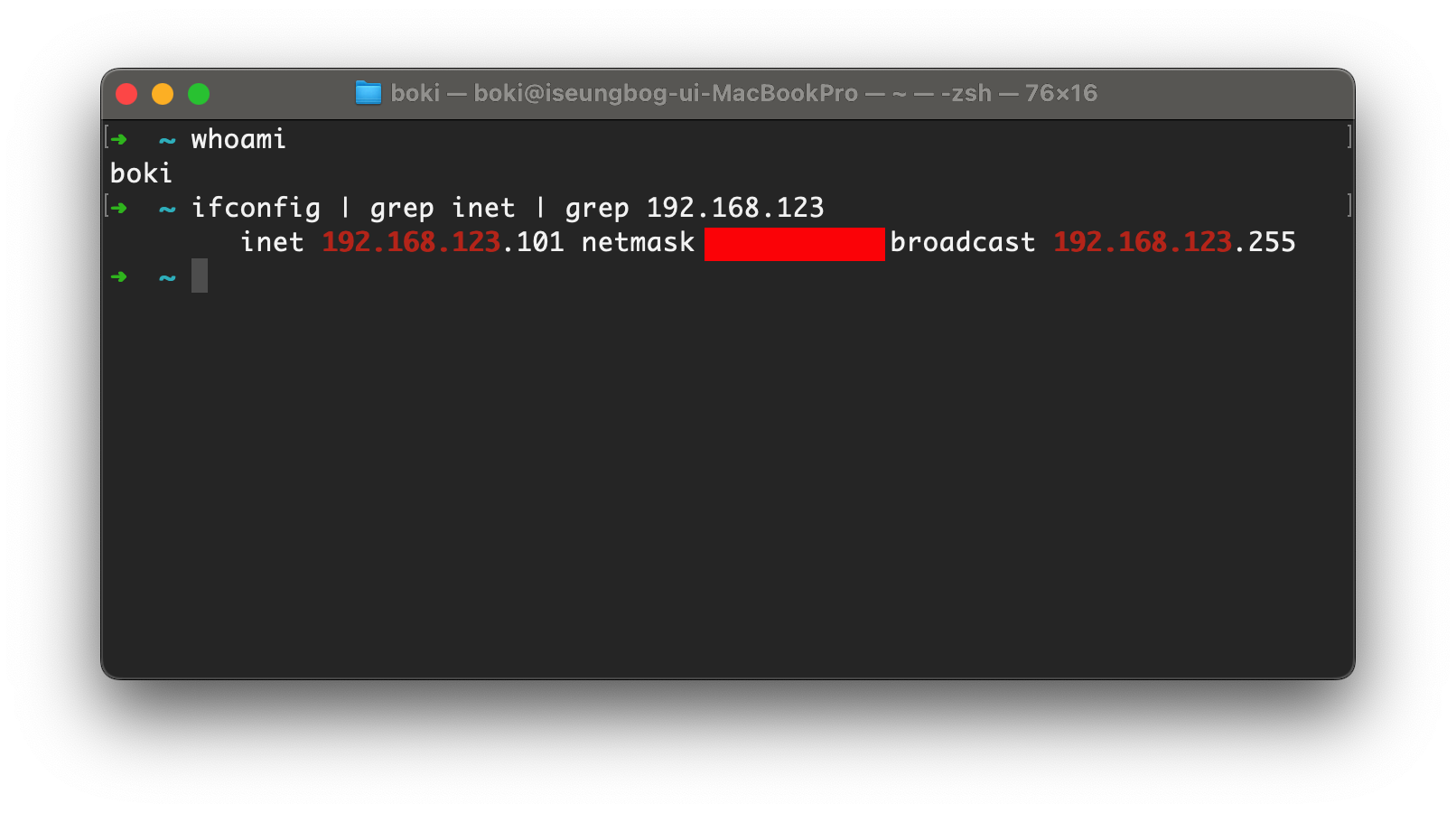 ifconfig | grep inet | grep 192.168.123