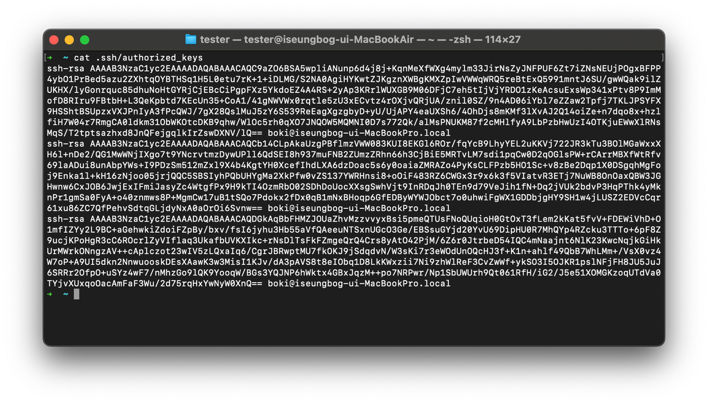 일전의 테스트와 같이 내 개인 맥북 2개로 SSH를 실습하며 동작과정을 알아볼 것이다