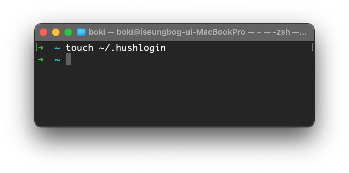 touch ~/.hushlogin- touch: 파일 생성 명령어