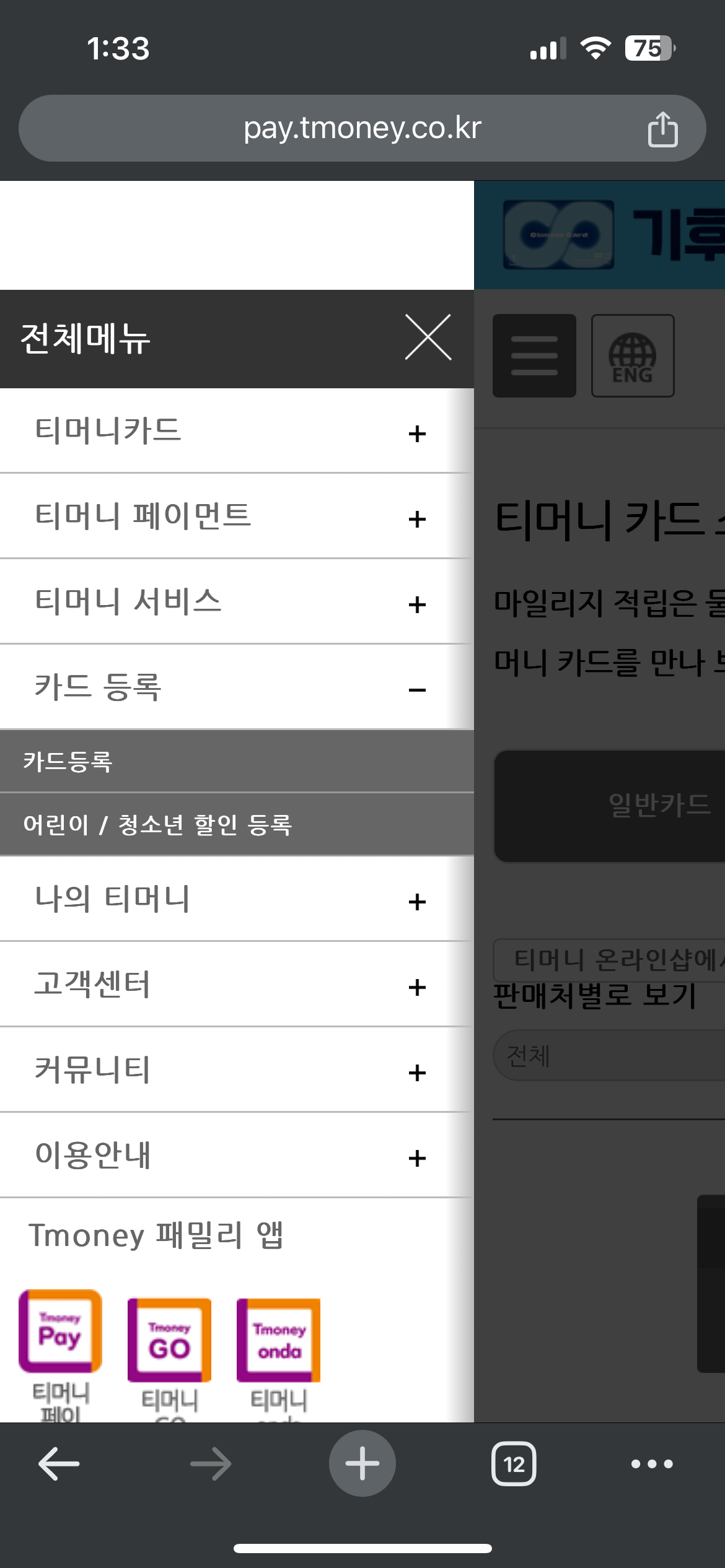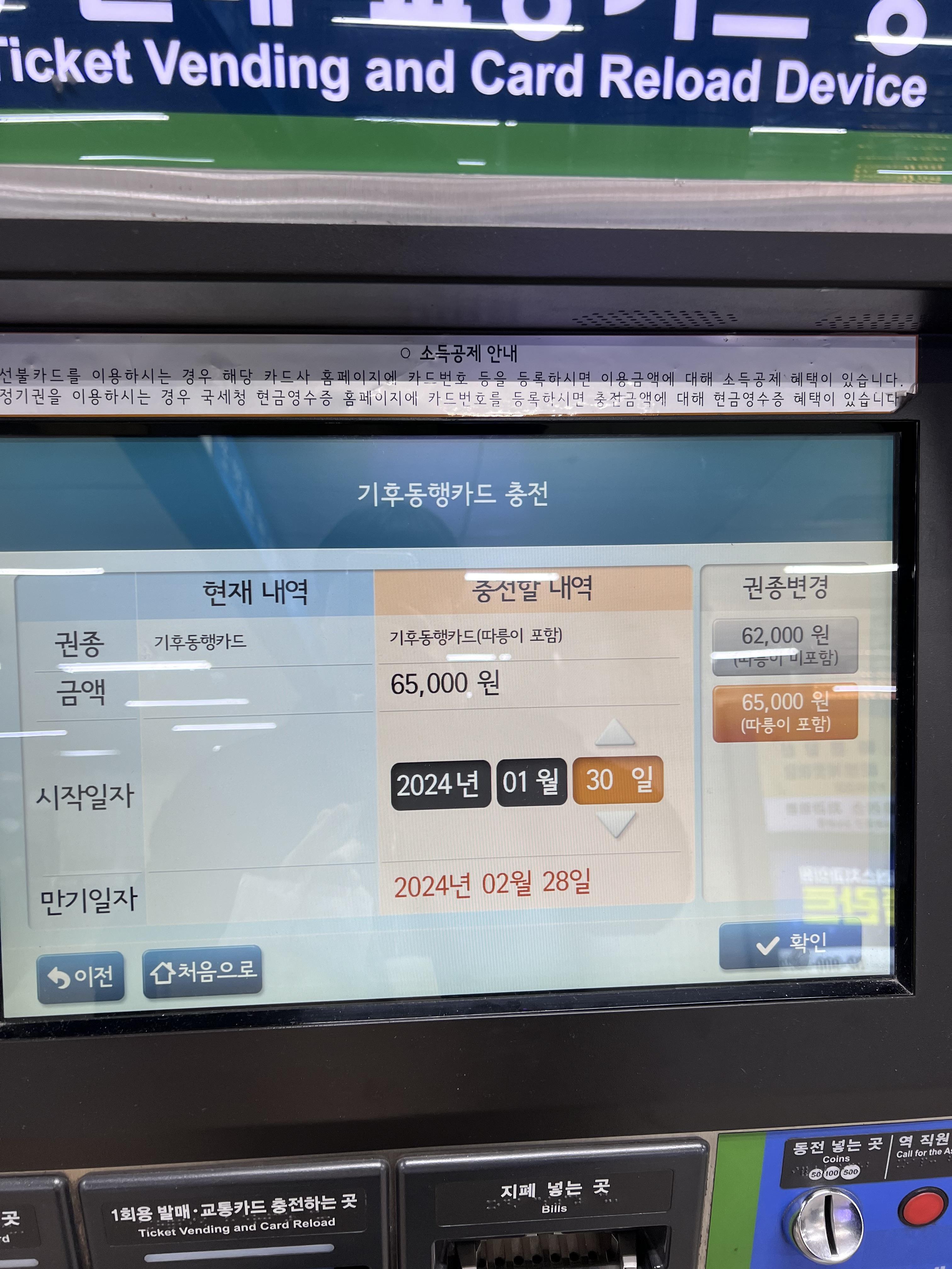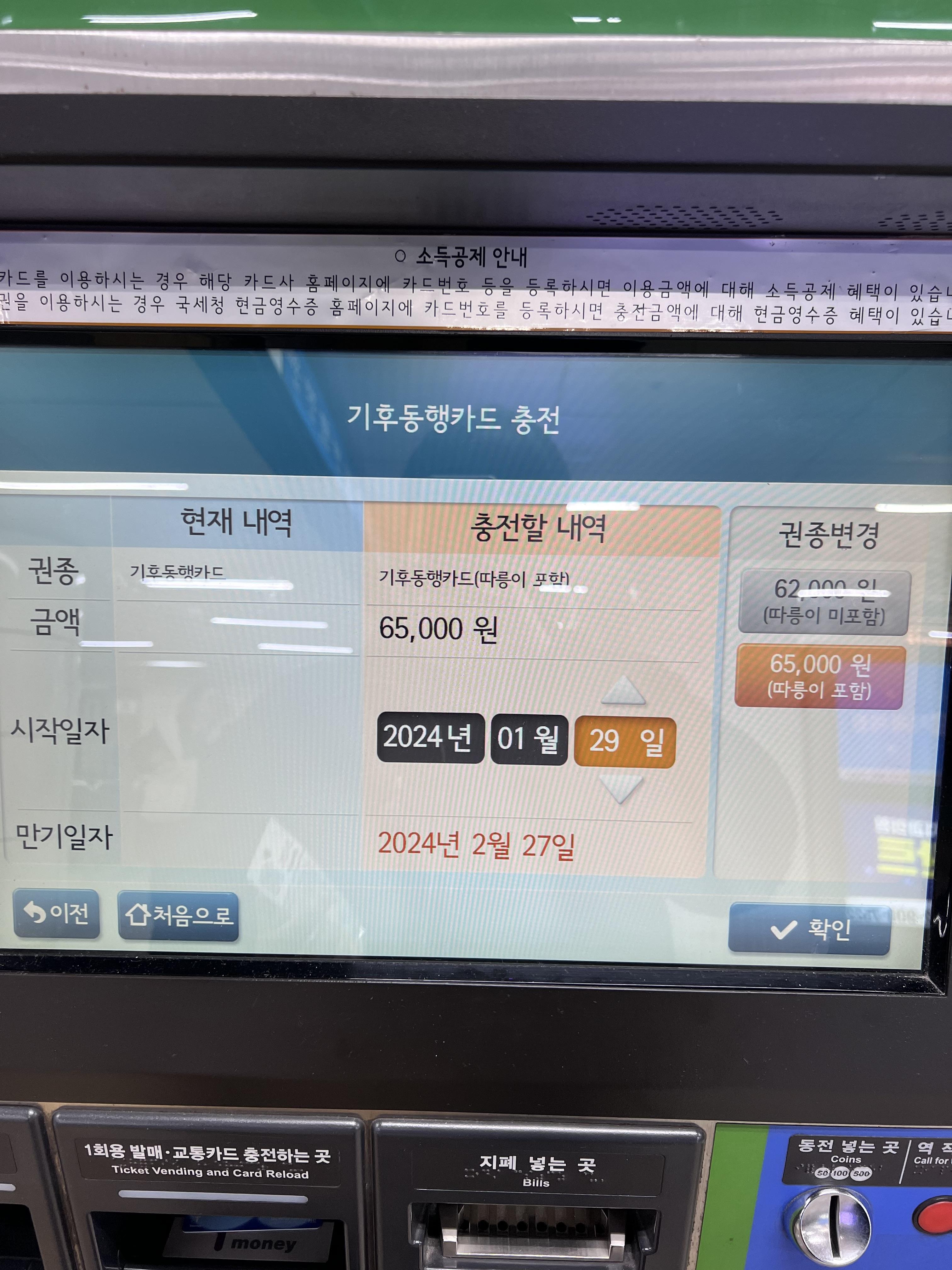 이제 카드 등록도 마쳤겠다...!! 카드에 돈을 충전하러 나왔다