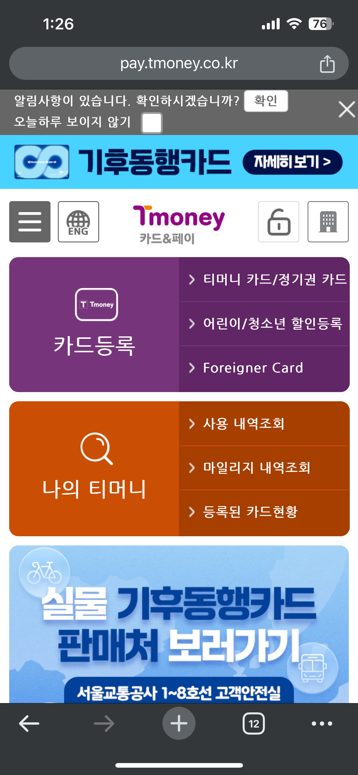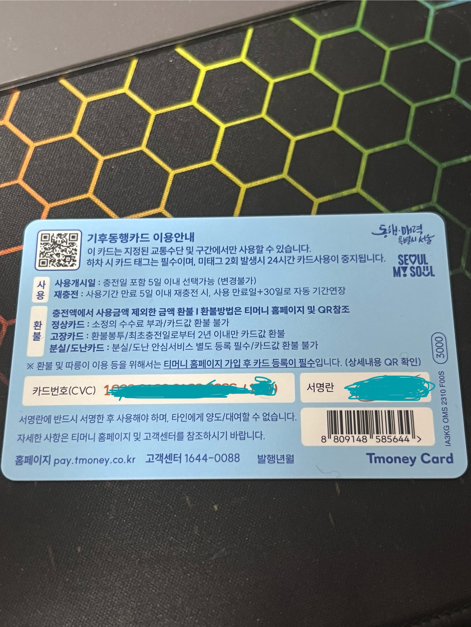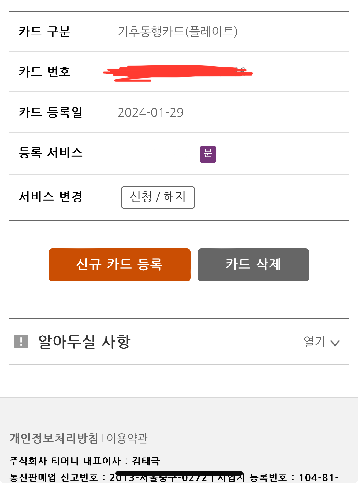 등록을 끝내고 등록된 카드 현황에 보면 등록된 기후동행카드를 볼 수 있다!