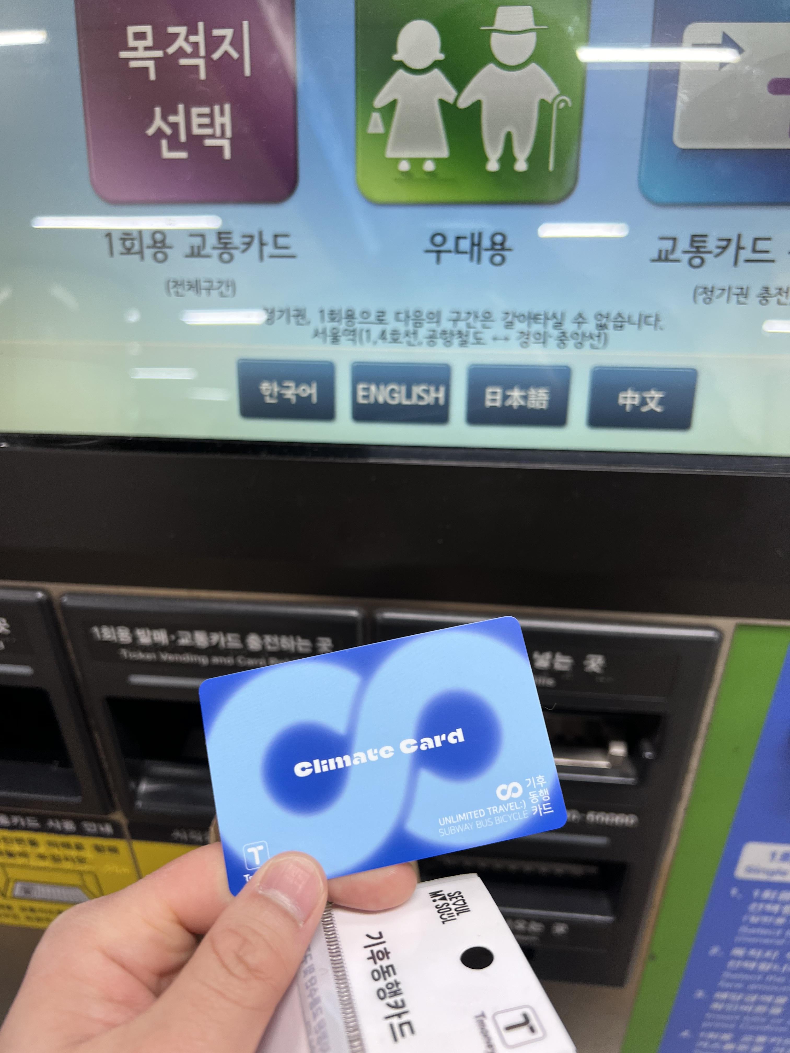 구매할 수 있는 곳이 있고, 없는 곳이 있는데, 가능한 곳은 기후동행카드 구매처라고 써있다!