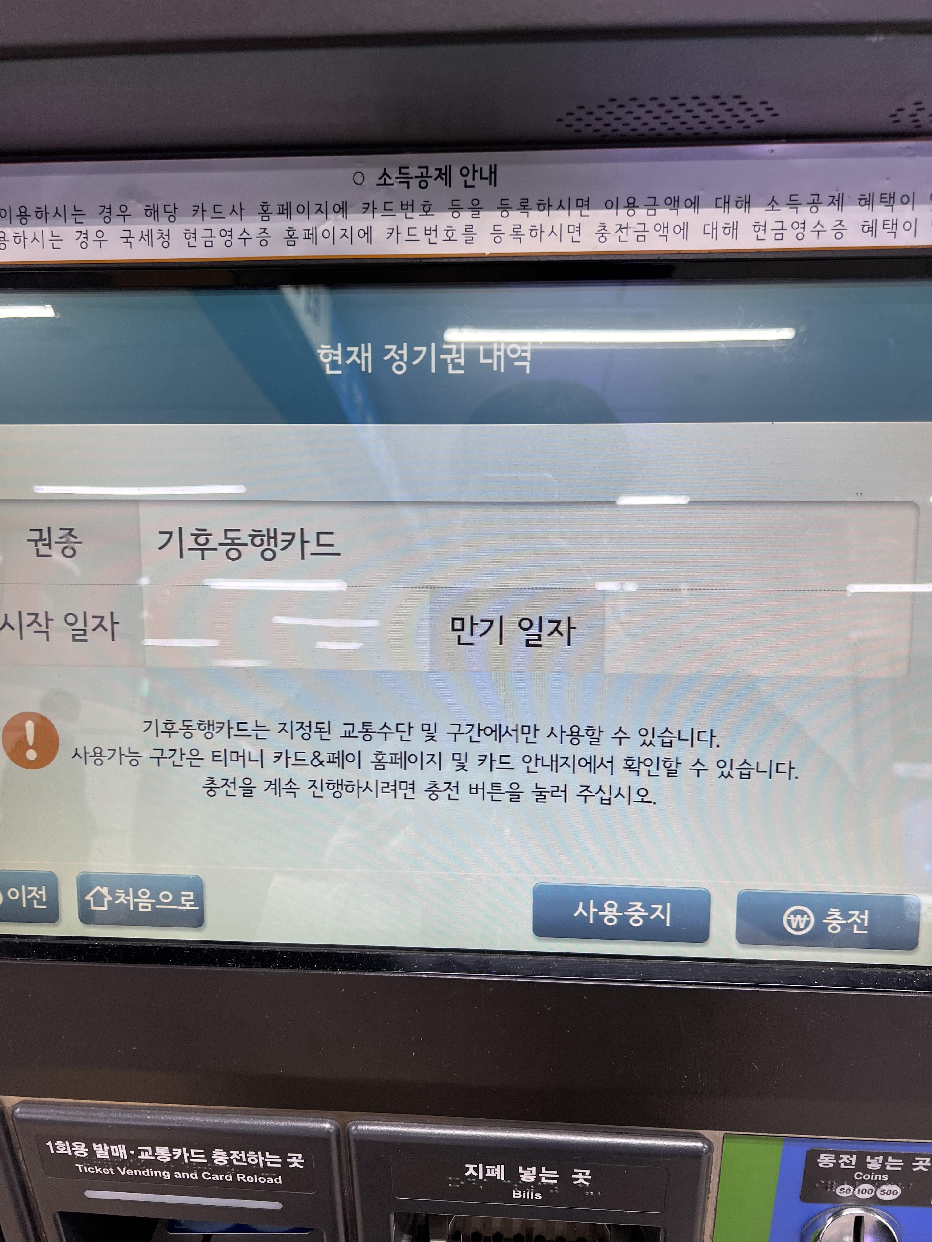 큰 게이트에서 지나갈때는 기후동행카드, 만기일자 이렇게 나온다