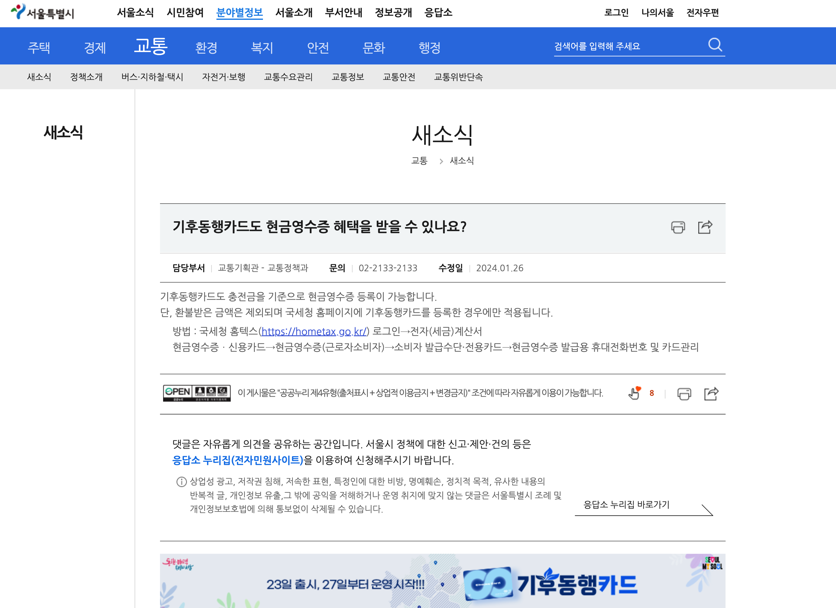 기후동행카드도 현금영수증 혜택을 받을 수 있나요?
