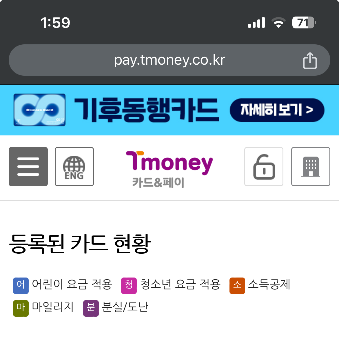 등록을 끝내고 등록된 카드 현황에 보면 등록된 기후동행카드를 볼 수 있다!