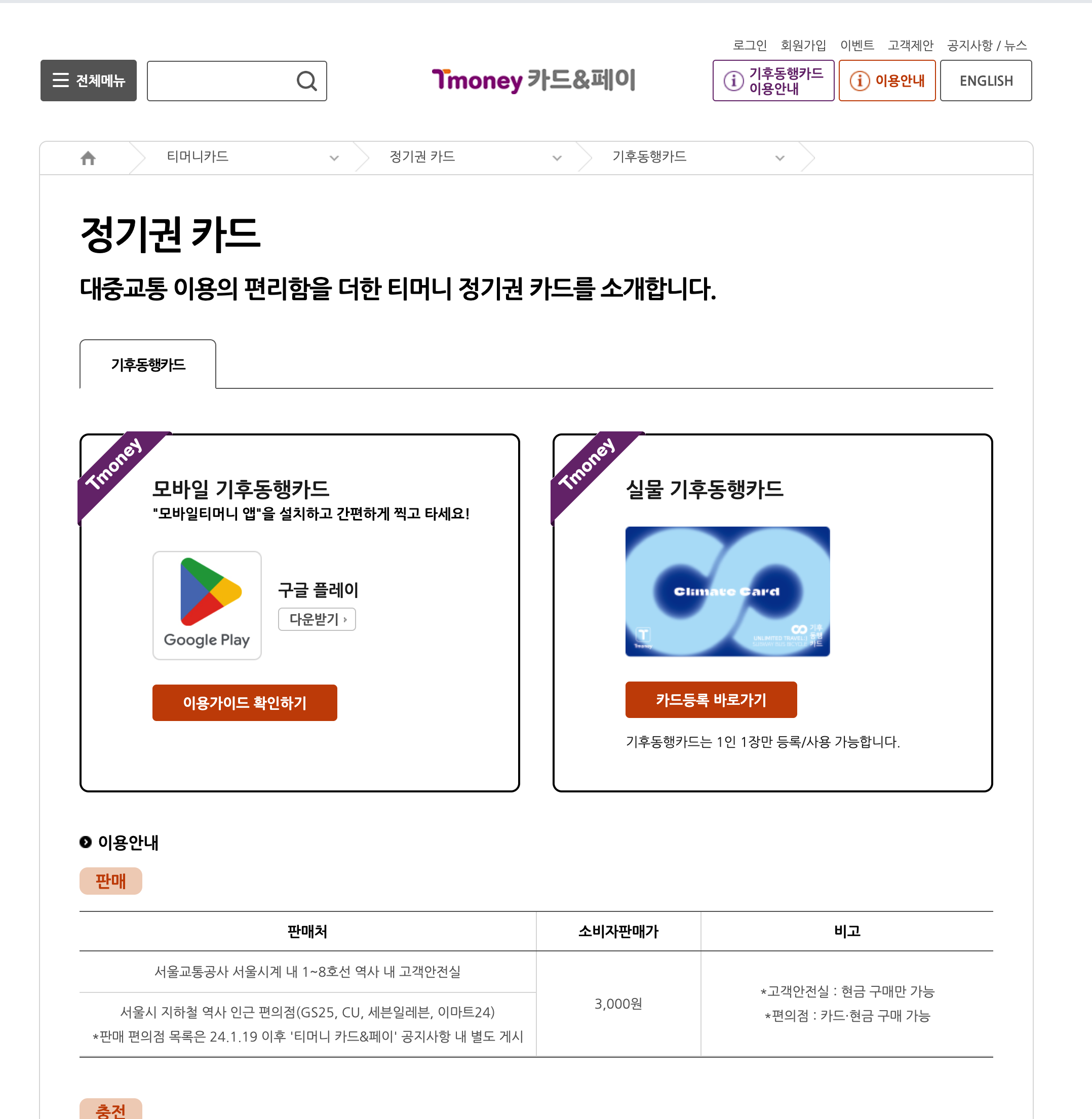 기후동행카드 - 정기권카드 - 티머니 소개 - 티머니
