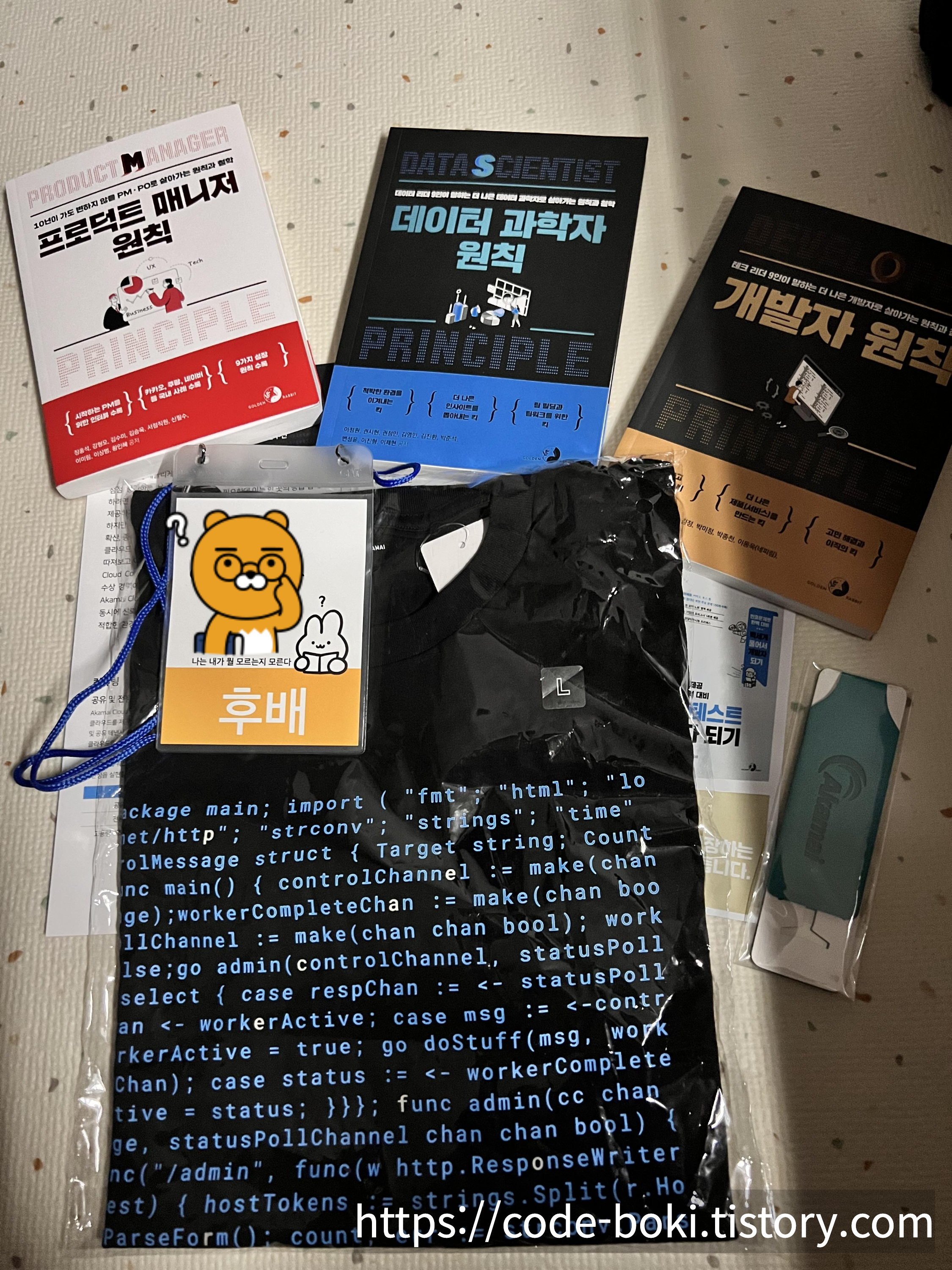 내가 했던 질문이 당첨되어서 너드 개발자 티셔츠(golang)도 사은품으로 받았다