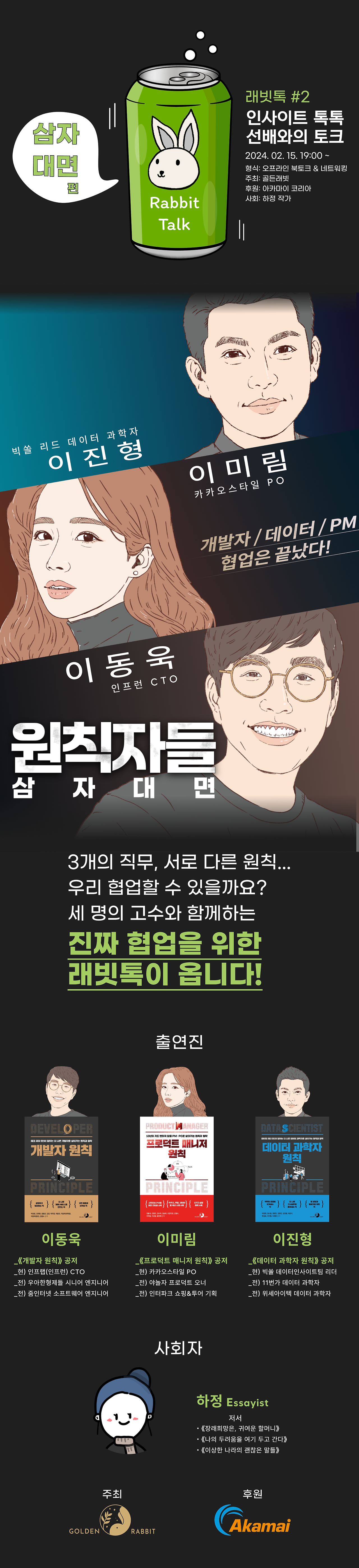 세 분 다 말을 너무 잘하시고, 회사에서 자신이 정량/정성적으로 기여한 부분에 대해서도 가감없이 말씀해주시기도 하고 좋은 경험들을 공유해주시니깐 정말 유익한 시간이었다