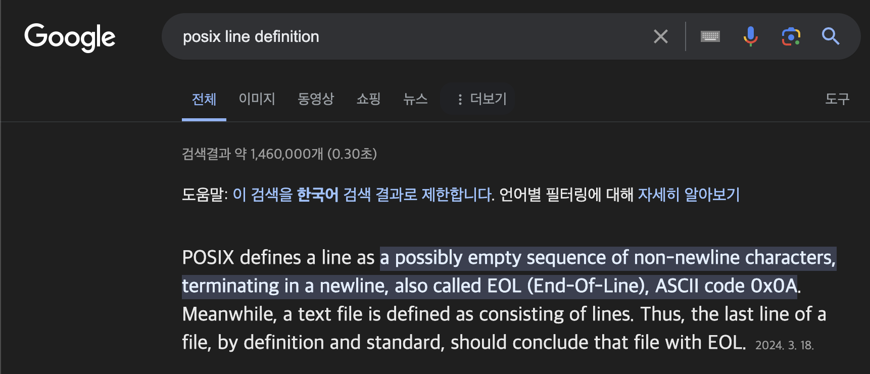 POSIX의 LINE 정의 (EOF)