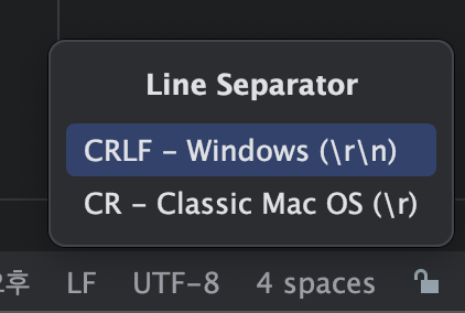 개발을 하면서 협업을 할 때 Code Convention을 맞추기 위해 Check Style을 사용한다.Check Style파일을 열어보면 줄바꿈 타입을 체크하는 부분이 있고, 줄바꿈 시 CRLF는 금지하고 LF는 허용하도록 설정되어
