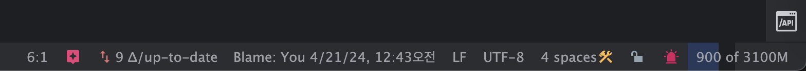 우측 하단에 사용중인 용량 / IDE에 할당된 총 용량이 나온다(메모리)