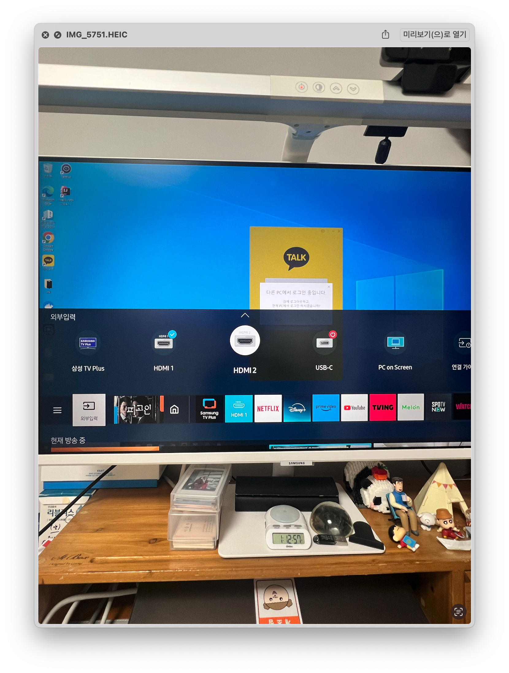 모니터는 삼성스마트 모니터인데.. HDMI1 - 윈도우 / HDMI2 - 맥북으로 쓰고있다.