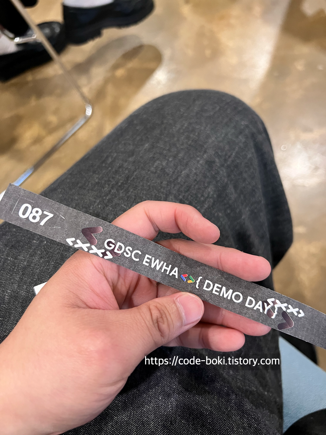 입구에서 참여자들 손목에 두르는 팔찌를 받았는데, 난 87번을 골랐다!