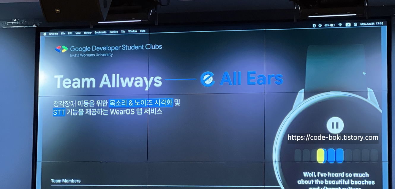 하지만 공부도 잘하는 이화여대 학생분들이 구글 프로그램에 참여한 프로젝트를 발표하는 모습을 보는건 또 달랐다.