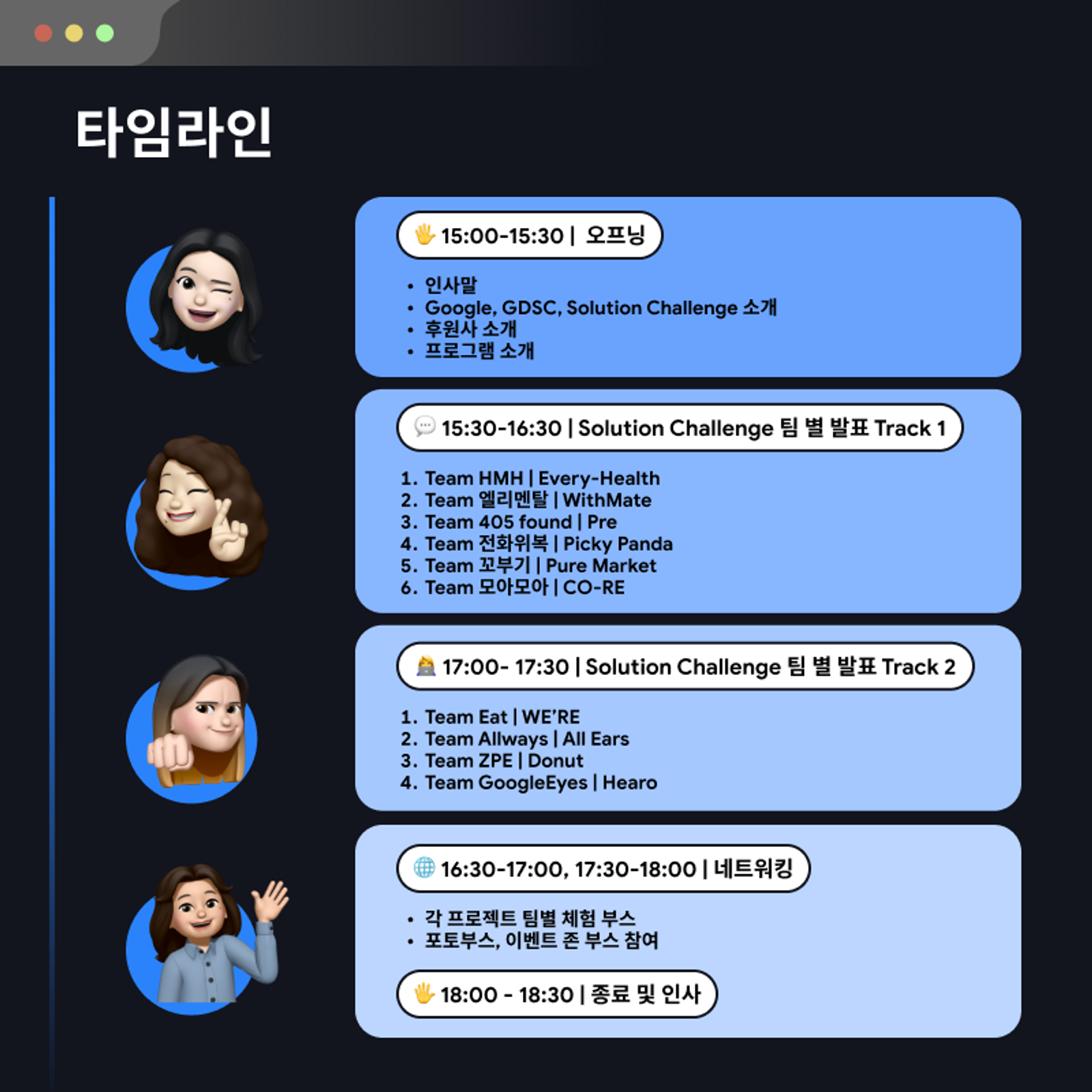 오늘 발표한 팀 중 어떤 팀은 GDSC Solution Challenge Top 10에 선정되기도 했다!