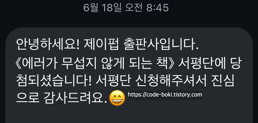 제이펍에서 서평단을 모집을 했었고 신청했었는데 당첨됐다!