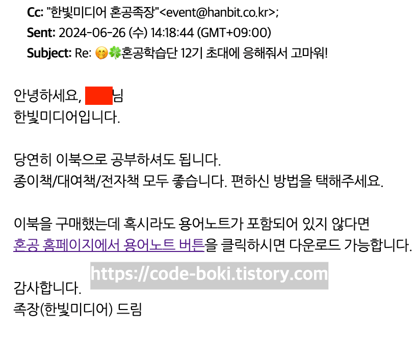 그랬더니 엄청 빠르게 답장이 오면서 Ebook으로 공부하셔도 좋다고 했다!