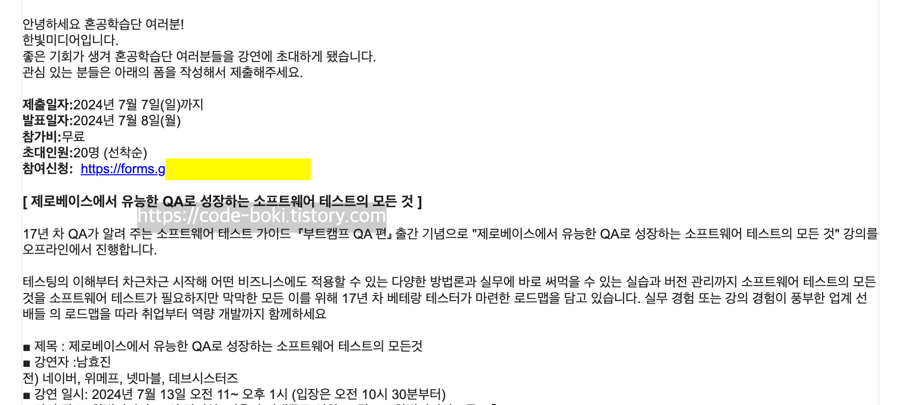 17년차 QA분이 강연하시는 이벤트에 무료로 참여하게 해주는 이벤트 메일이 왔었다!