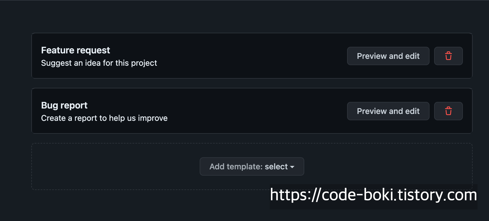 그럼 앞으로 새로운 이슈를 만들 때 이슈 템플릿을 선택하게 된다