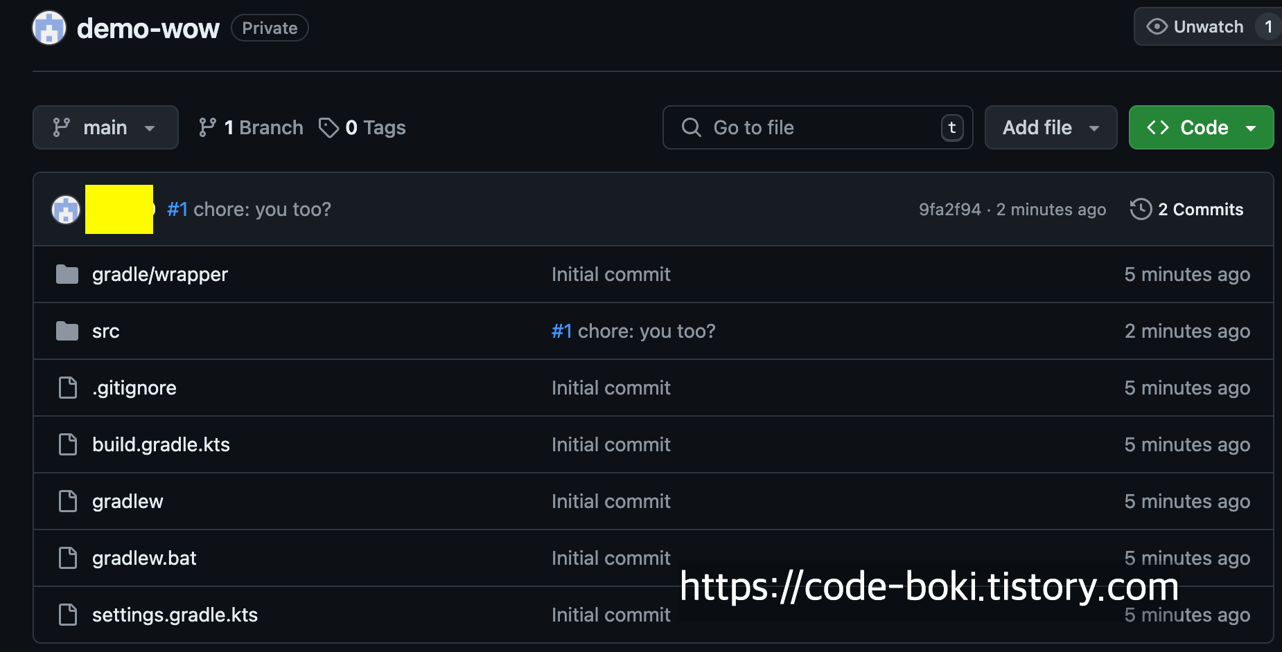 이렇게 나오고.. 2 Commits라는 곳을 눌러 히스토리를 보면