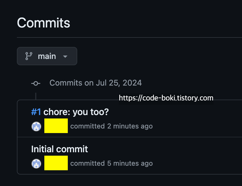 이렇게 나오고.. 2 Commits라는 곳을 눌러 히스토리를 보면