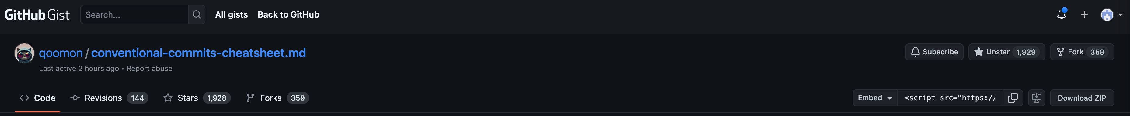 Conventional Commits Cheatsheet. GitHub Gist: instantly share code, notes, and snippets.