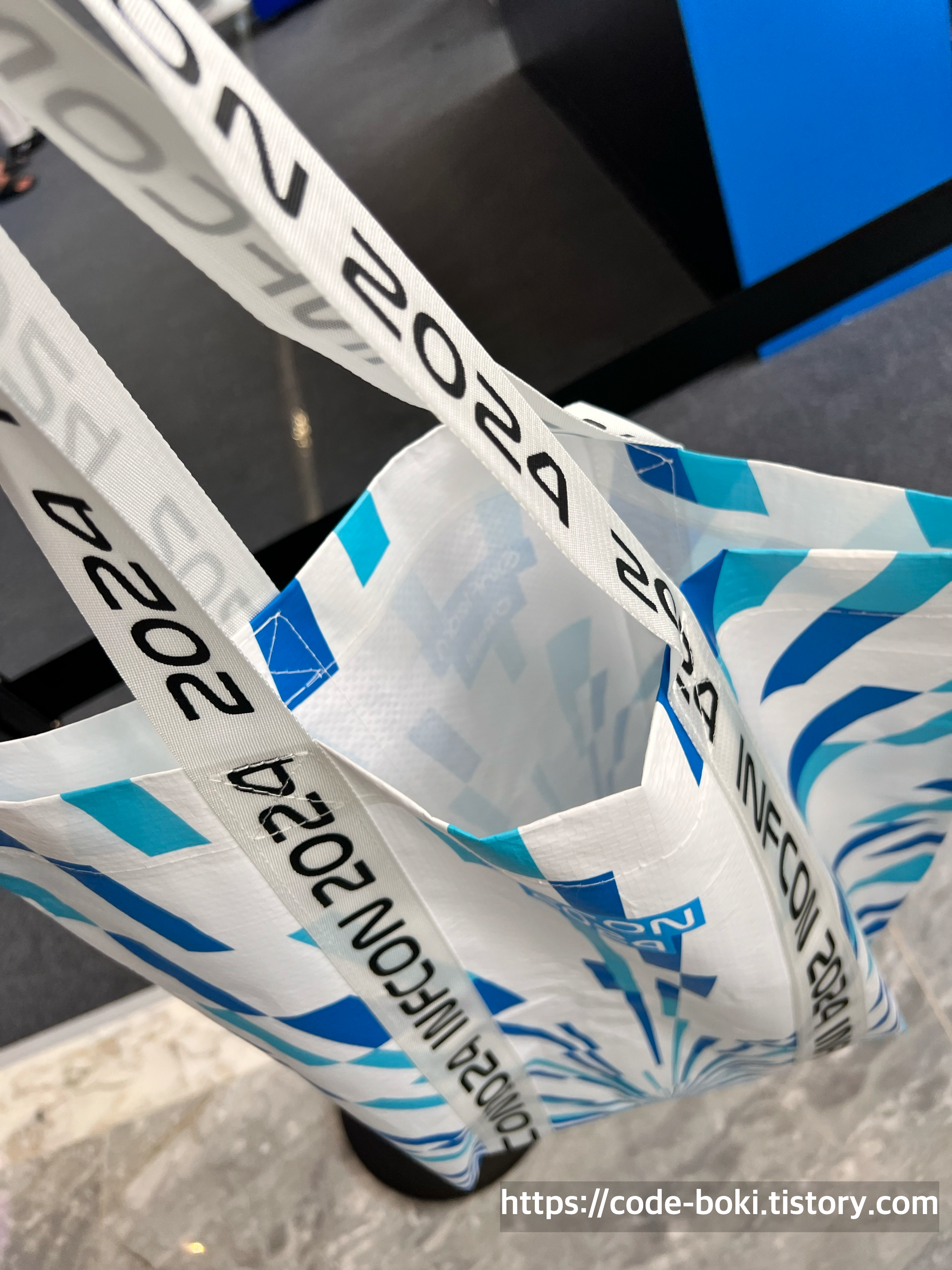 등록을 마친 뒤에는 목에 거는 입장권, 인프콘 행사 가방(물, 팜플렛)을 받았다