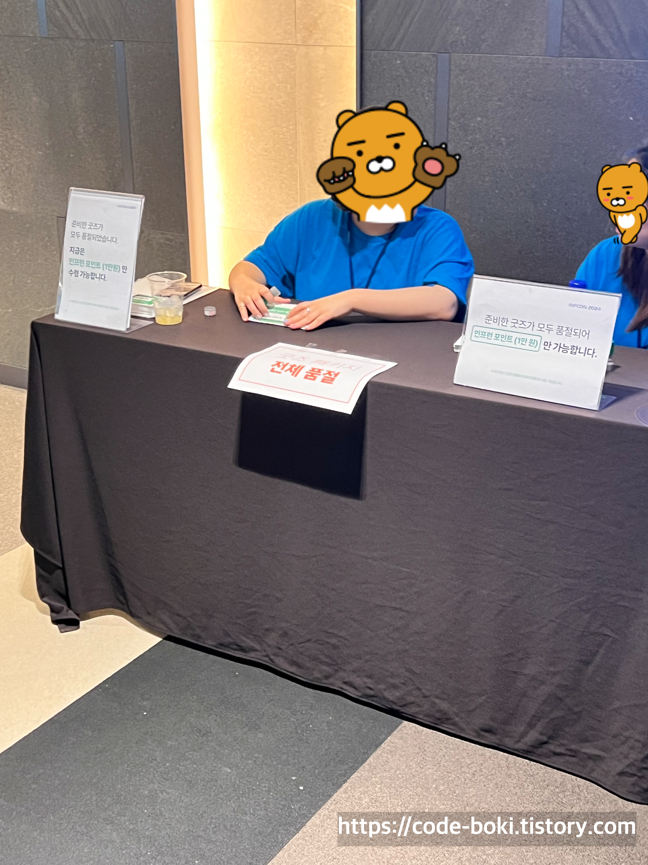 2층으로 올라와서 내가 아까 굿즈를 받았던 곳을 지나쳤는데, 와.. 굿즈가 전체 품절이란다 ㄷㄷ