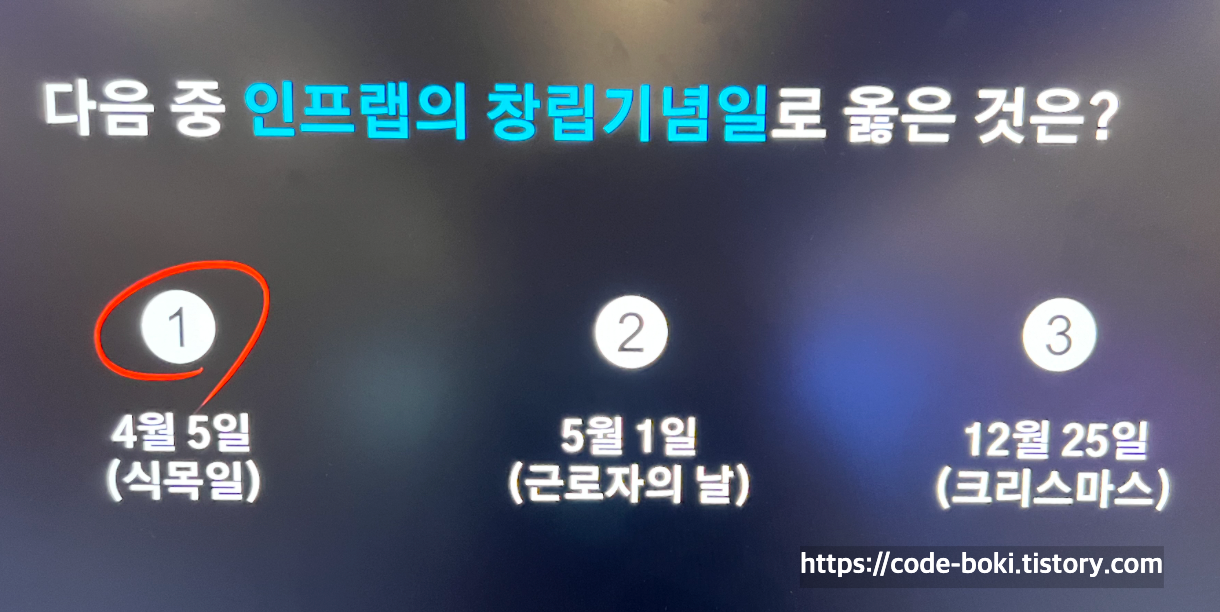 퀴즈는 무려...... 인프랩의 창립기념일이었다
