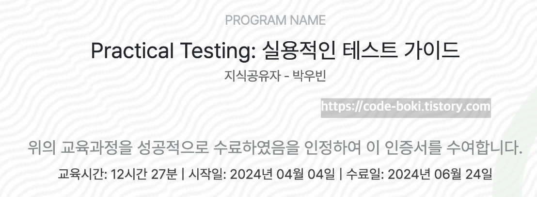 인프런이 2024.06.27 - 2024.07.02 기간 중 강의를 새로 구매한 사람 중 단, 25명을 추첨해서 무료로 보내주는 이벤트를 했었다