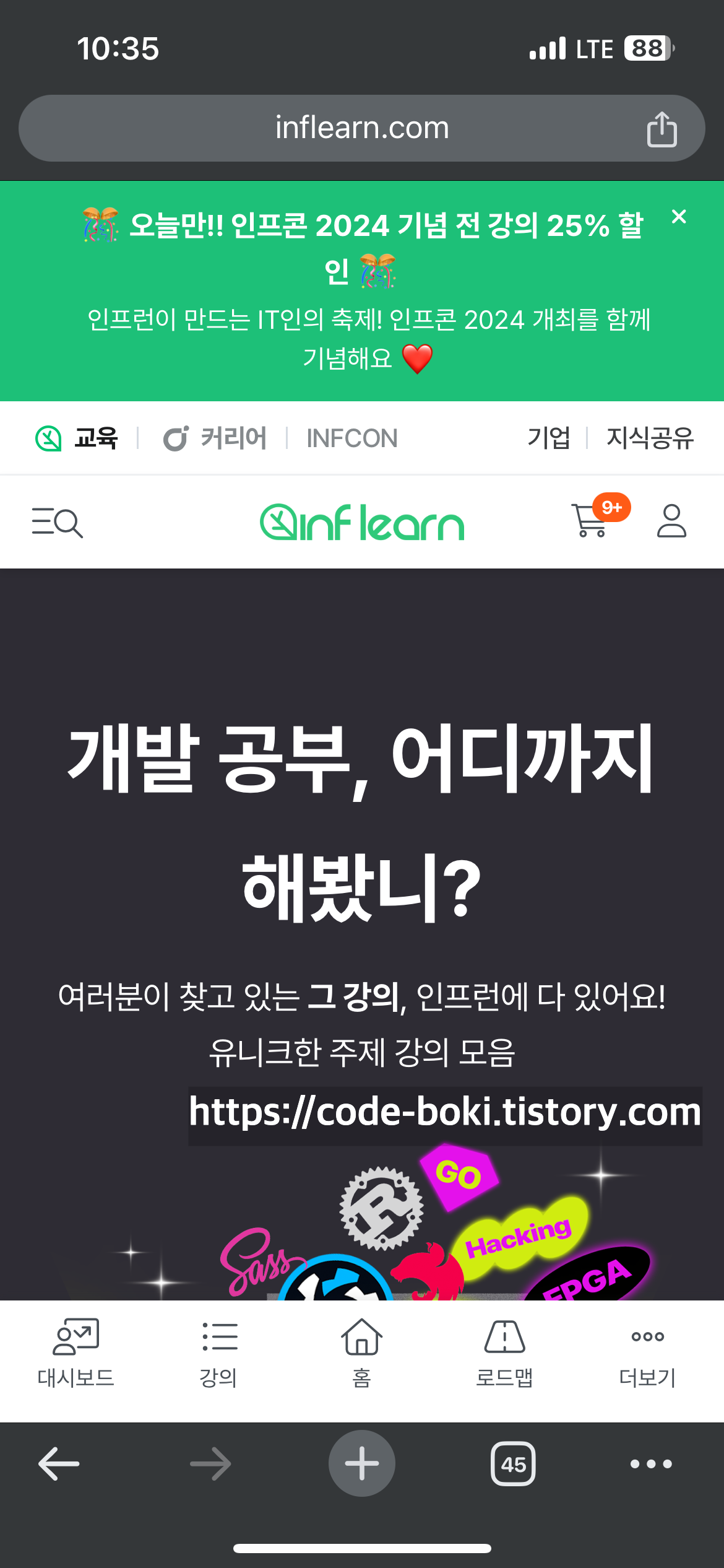 행사날이라고 인프런에서 전 강의 25% 할인한단다! 아마 이때 엄청난 강의구매가 있었을 것 같다