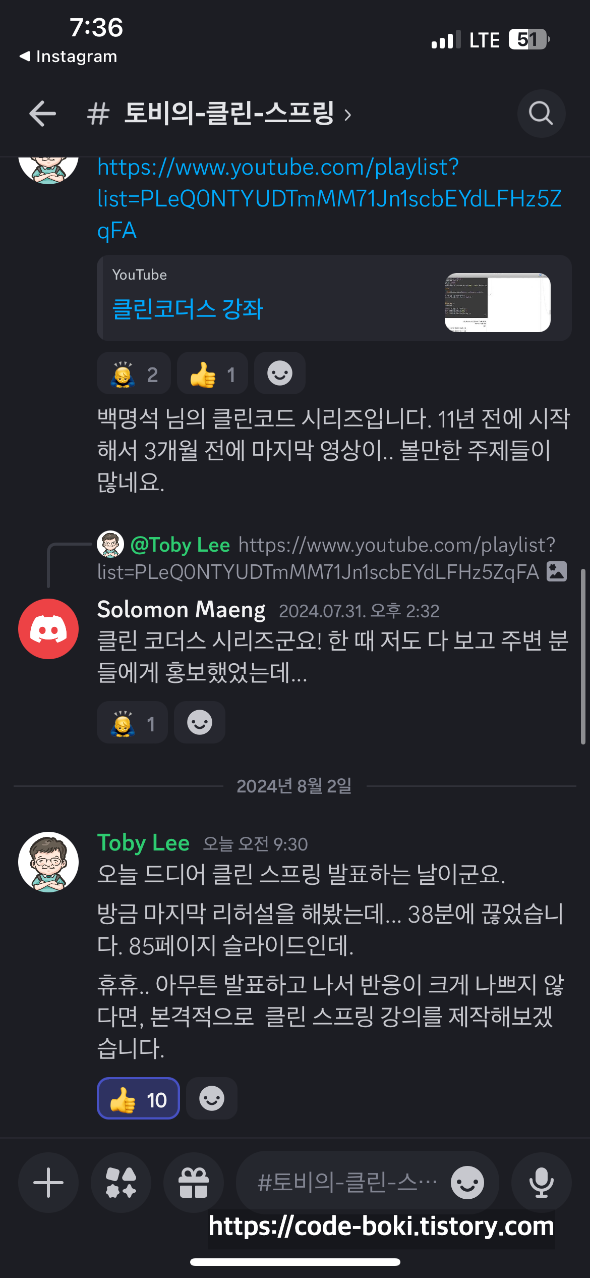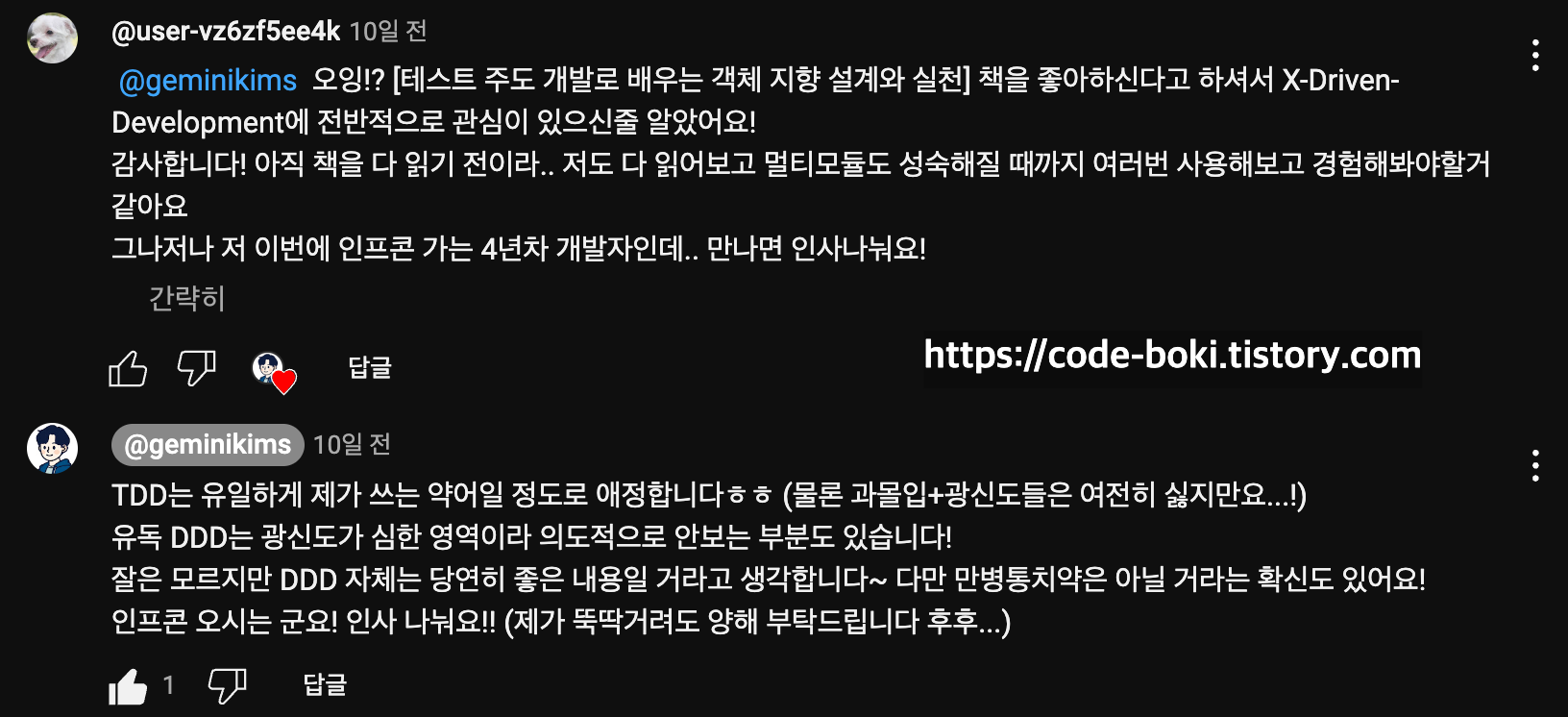 널널한 개발자 최호성님께 올해 3월말 호성님의 강의를 완강했고, 많은 도움이 됐었다고.. 감사의 말씀을 전했다