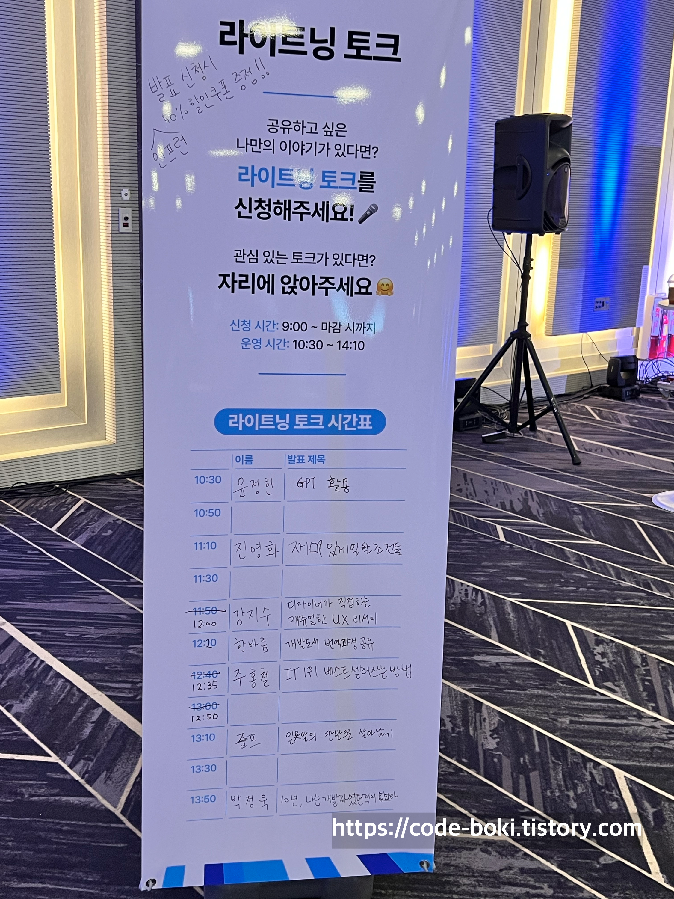 어쨌든, 나도 나중에 책이나 강의를 내고 싶은 생각이 있기 때문에... 가벼운 마음으로 2층을 돌아다니다 좋은 기회를 얻게 되어서 라이트닝 토크 세션을 들었다
