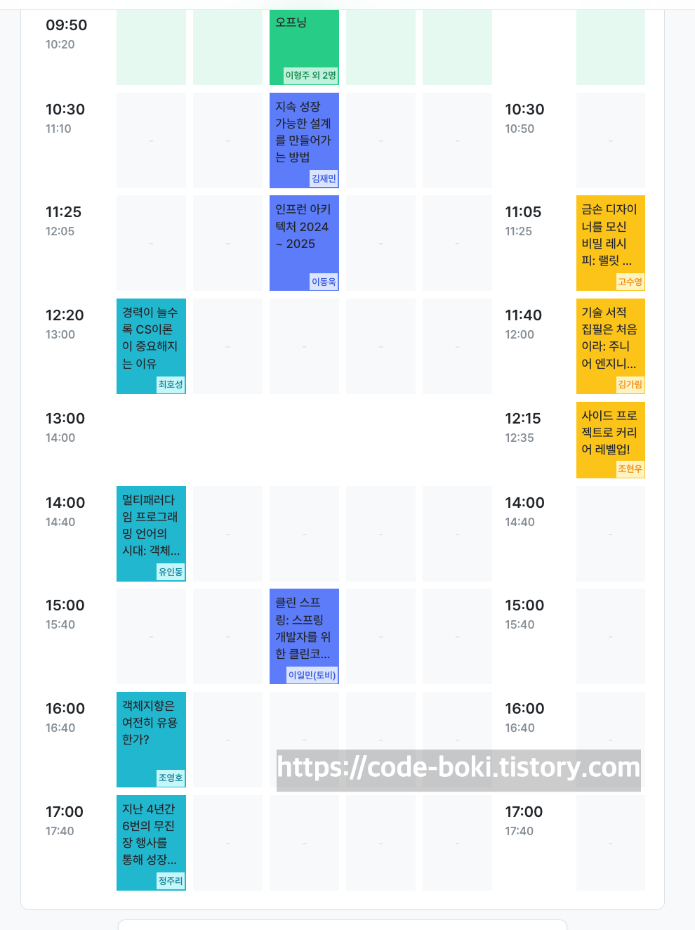 # My 인프콘 세션 시간표
