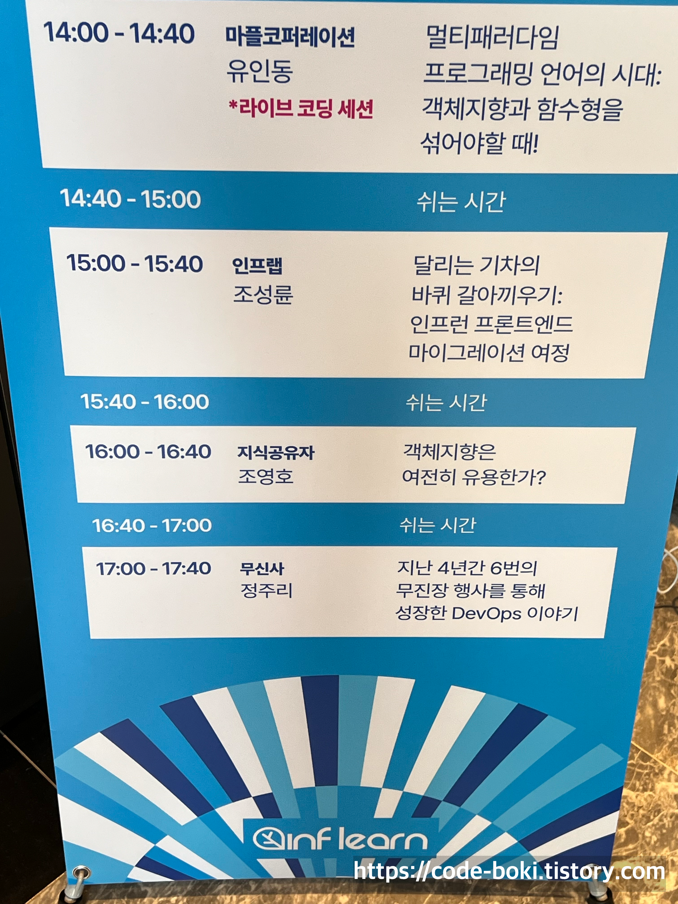 유인동님 세션을 들으러 가고 싶었지만... 너무 줄이 길었고, 2시 40분에 스탬프 투어를 확인하고 인프런 굿즈를 나눠준다는 게 기억나서 이번 세션은 스킵했다
